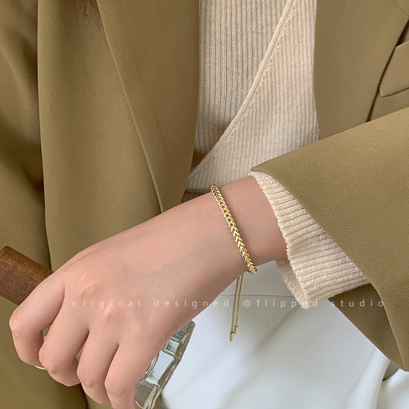 钛钢可调节抽拉式金色龙骨手链男潮ins简约冷淡风时尚个性手饰女
