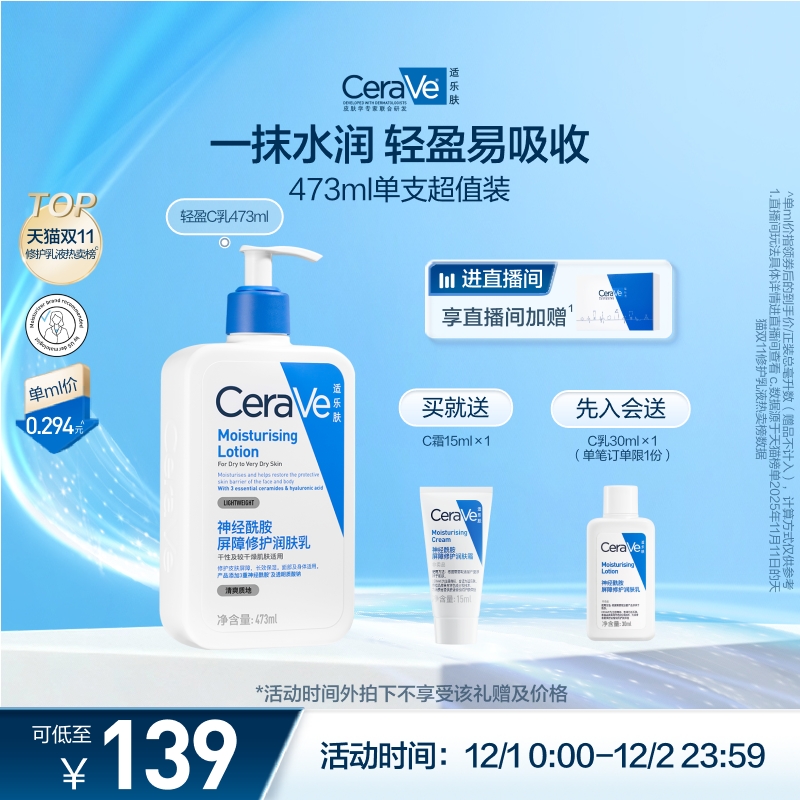 CeraVe适乐肤C乳保湿润肤身体乳液面霜敏感肌男女正品张凌赫同款