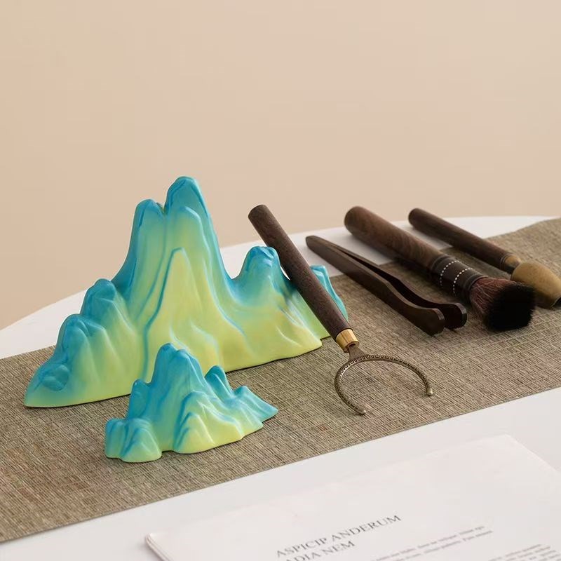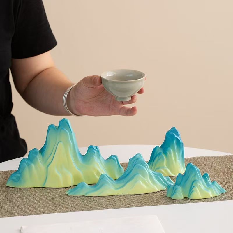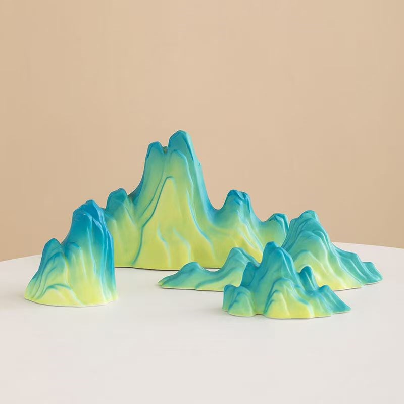 只此青绿假山千里江山装饰摆件鱼缸造景陶瓷假山T拍摄道具微景观