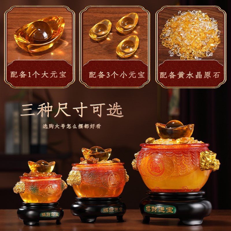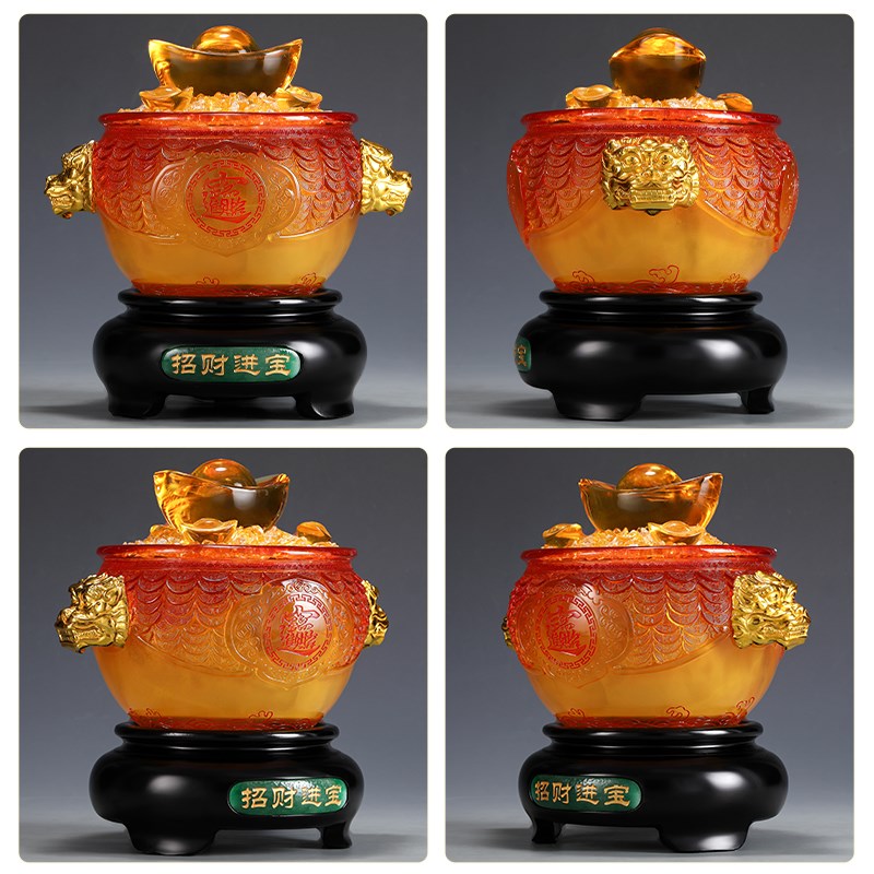 铜之父七彩琉璃工艺品招财元宝聚宝盆摆件店铺收银台装饰开业礼品