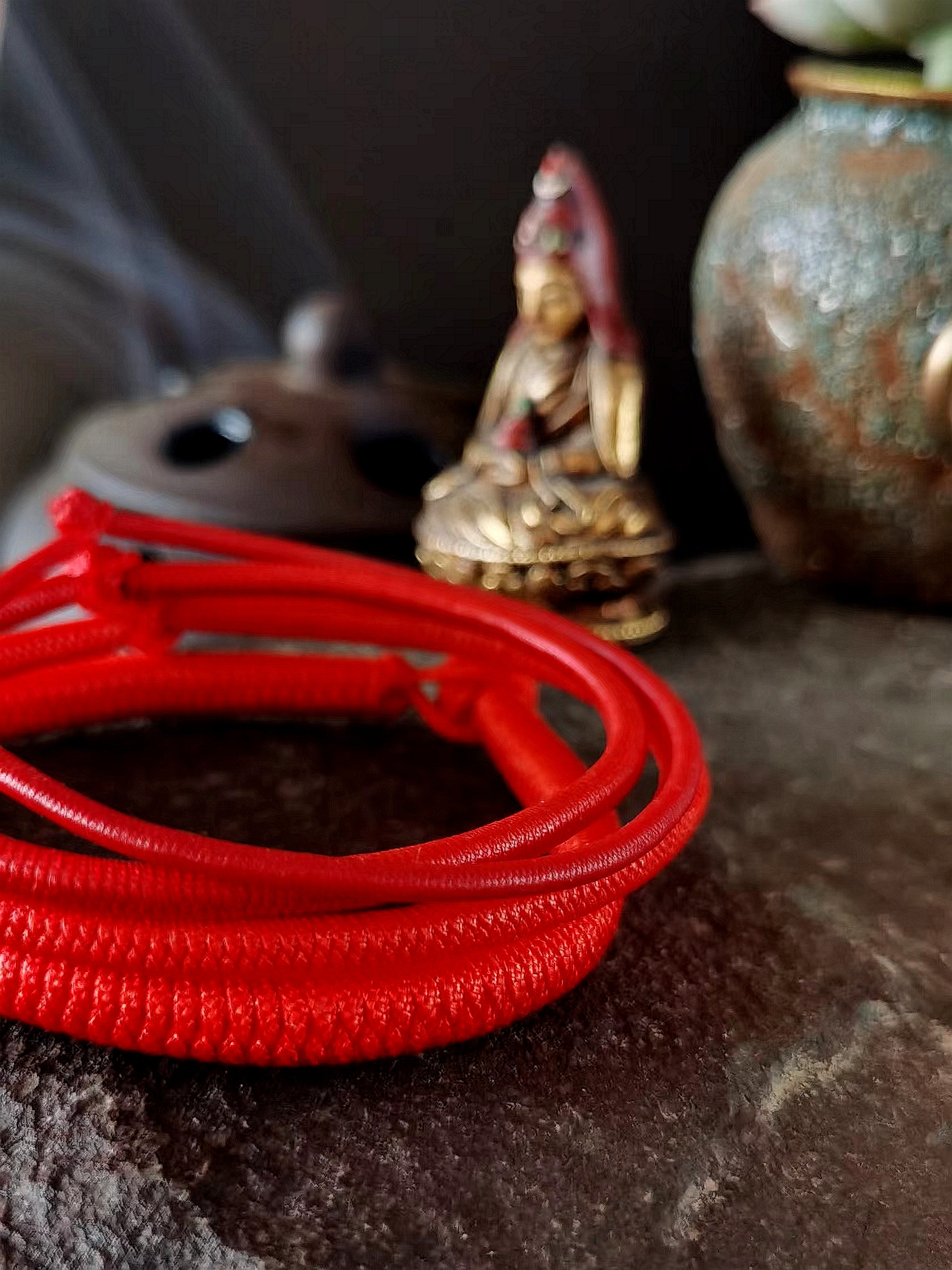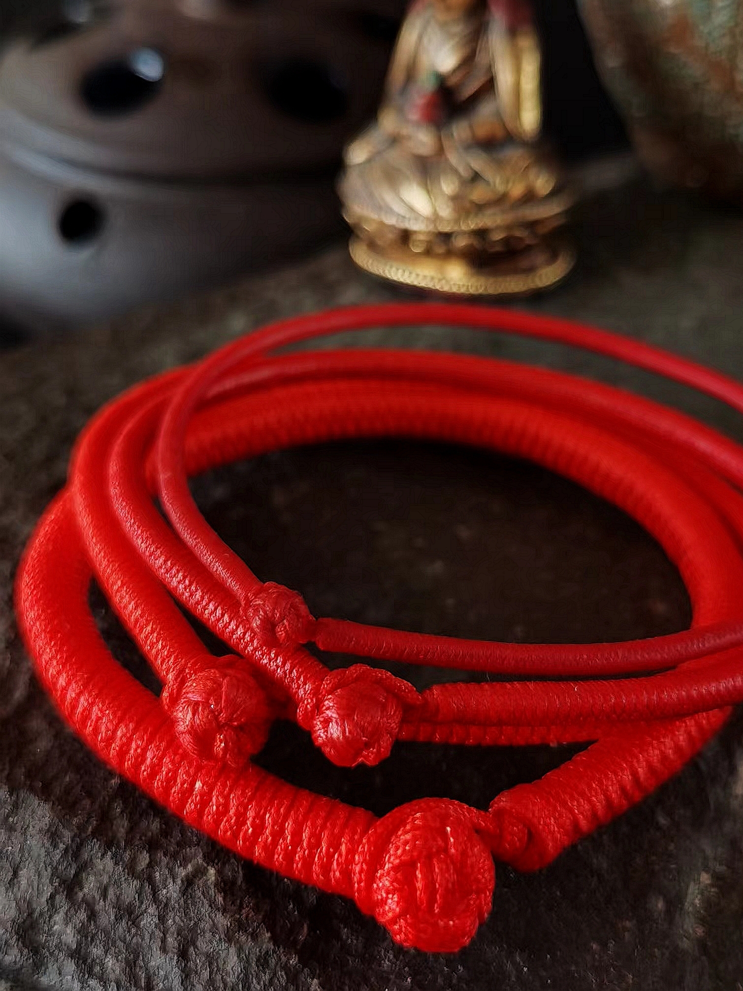 纯手工藏式九乘金刚结 国潮红绳手链 原创编织特细手绳 长度定制