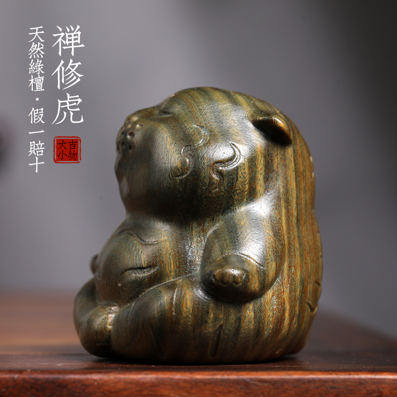绿檀木雕禅修老虎创意文玩手把件可爱新中式禅意风摆件不生气摆件