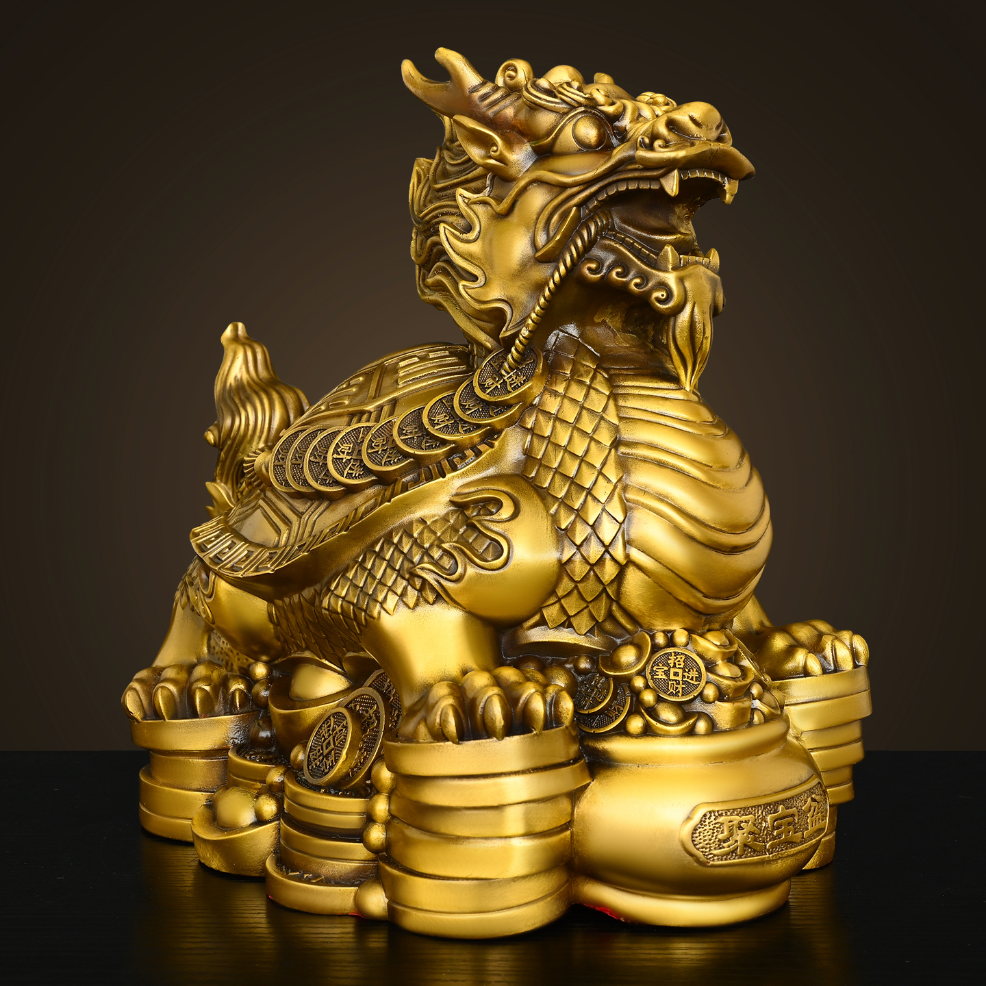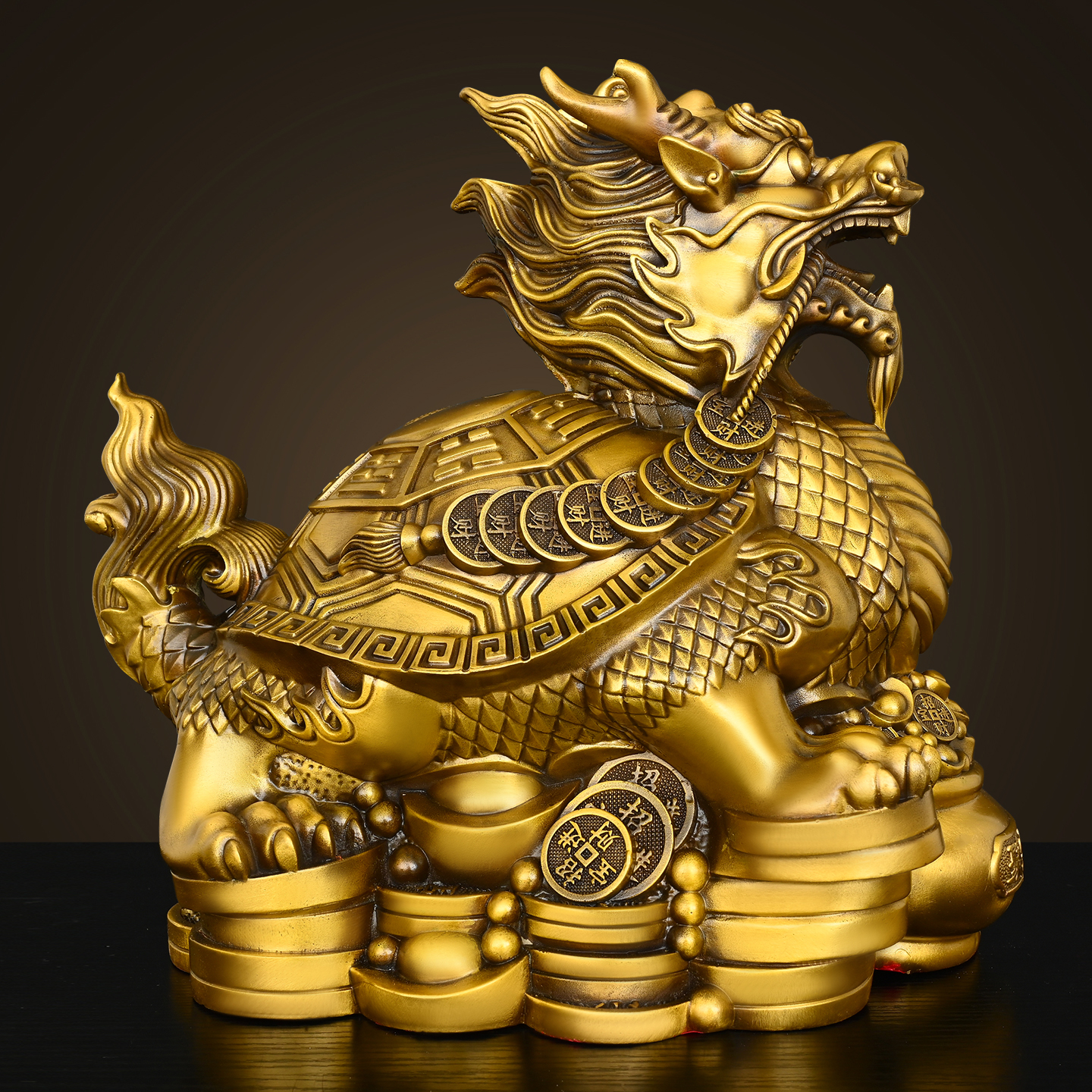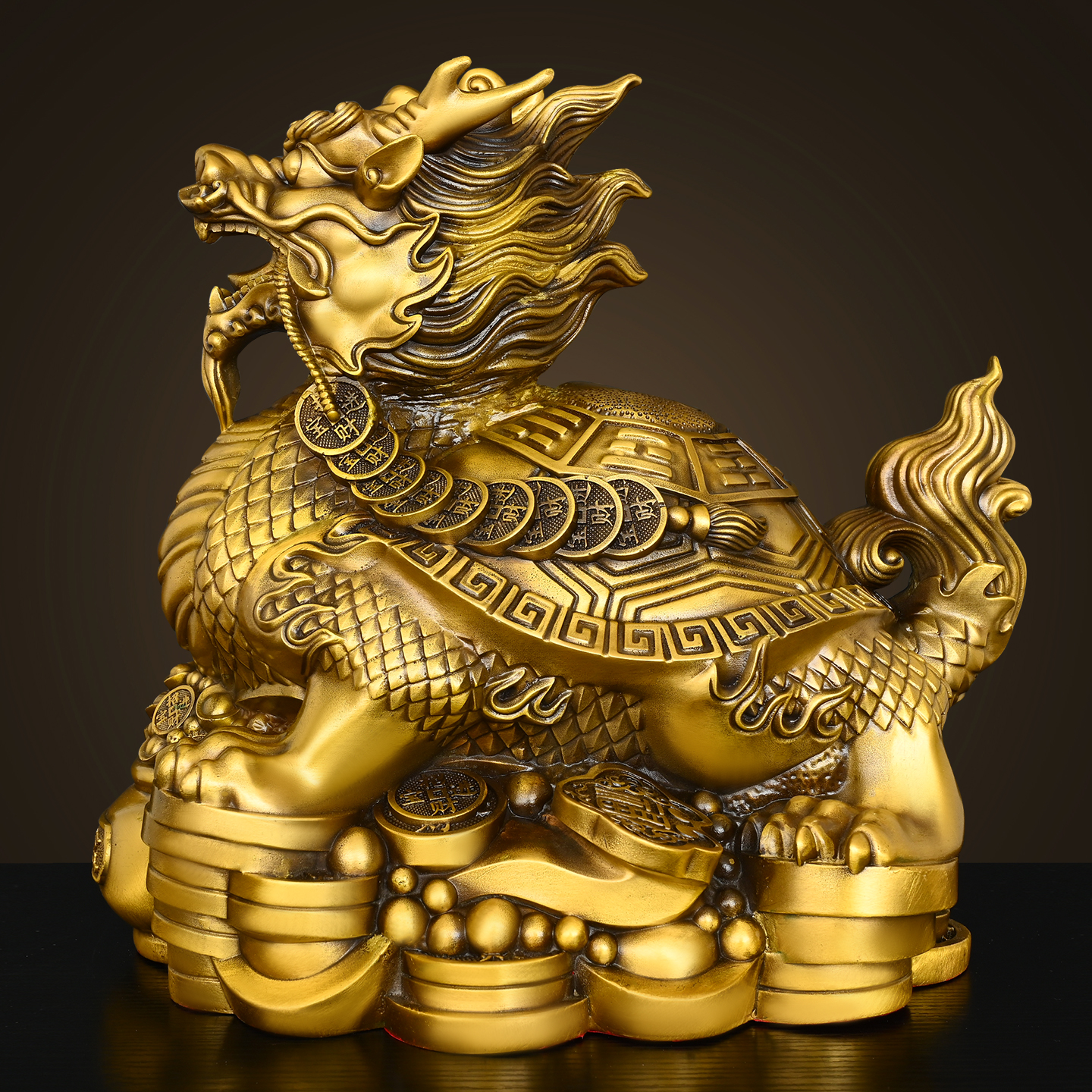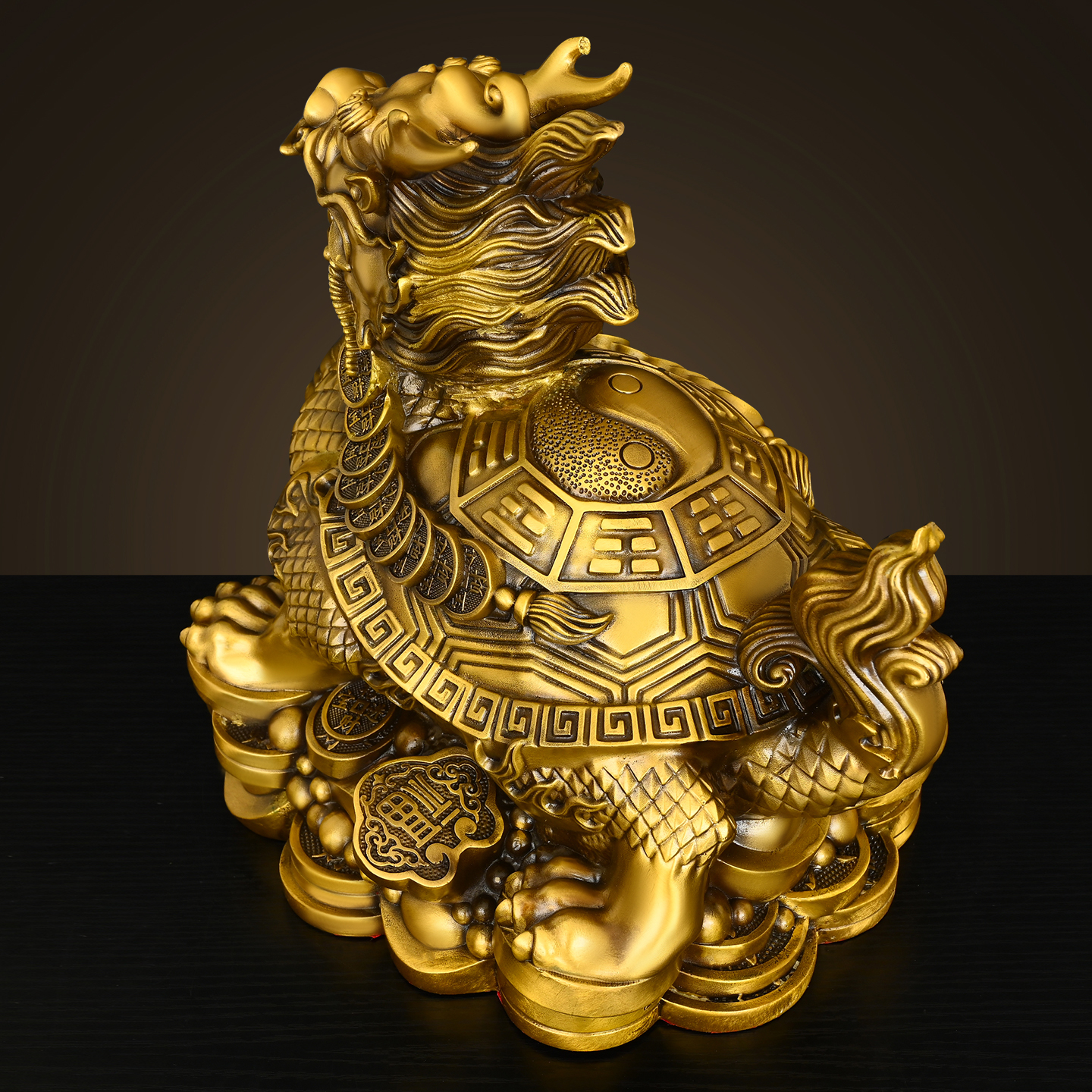 纯黄铜龙龟摆件聚宝盆龙龟金钱龙头龟八卦龙龟纳财家居公司装饰品