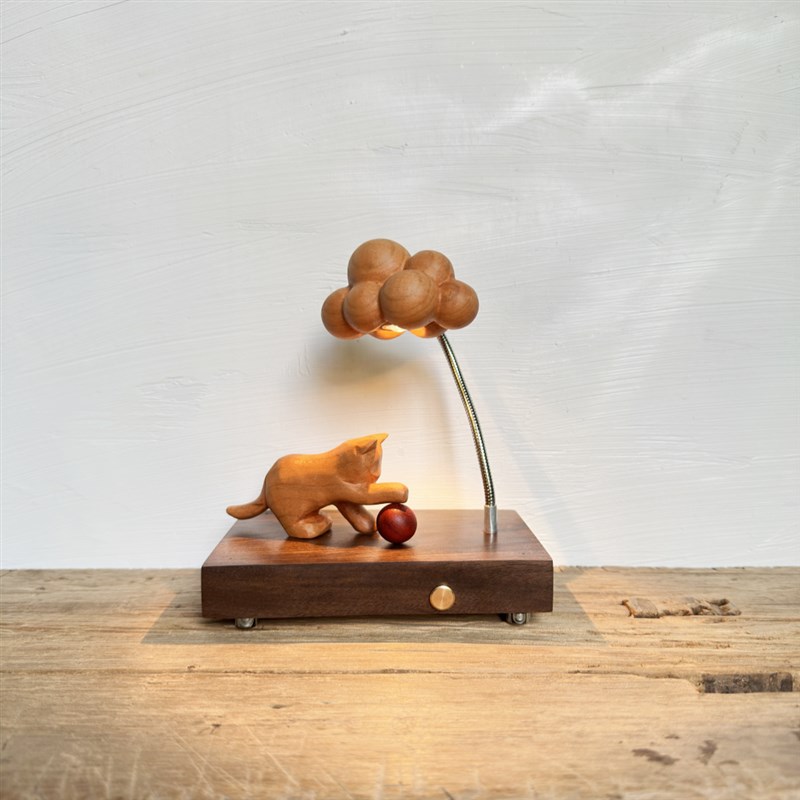 原木风木雕猫咪小众卧室床头民宿创意礼品装饰氛围木质摆件小夜灯