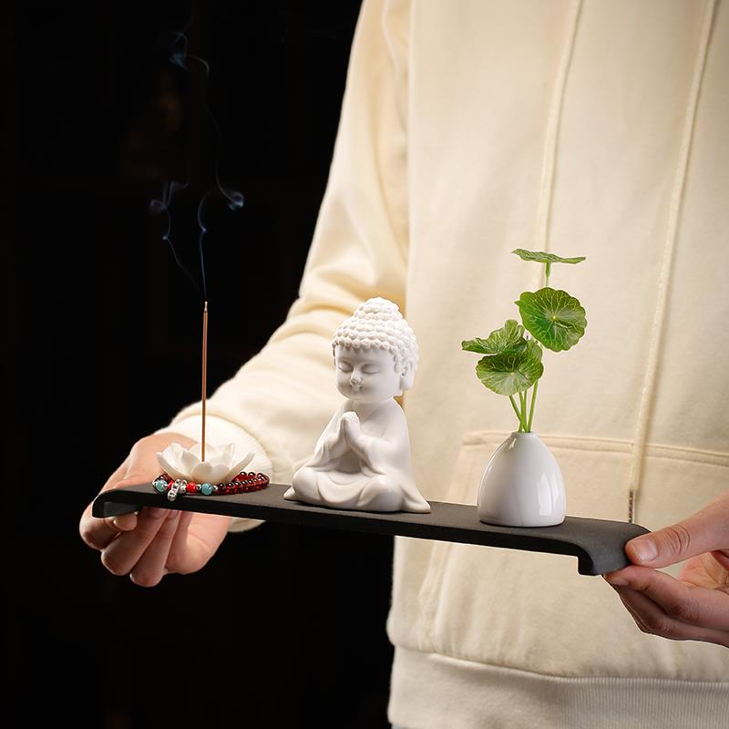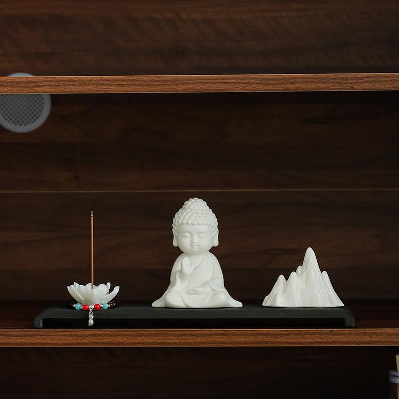 中式禅意白瓷如来佛像摆件创意茶宠线香插家居客厅桌面茶室装饰品