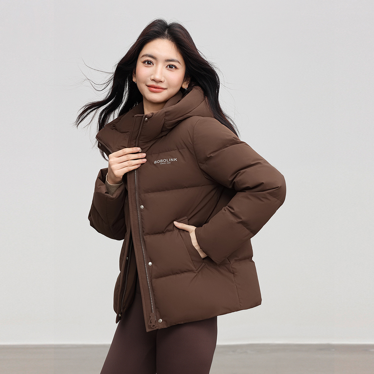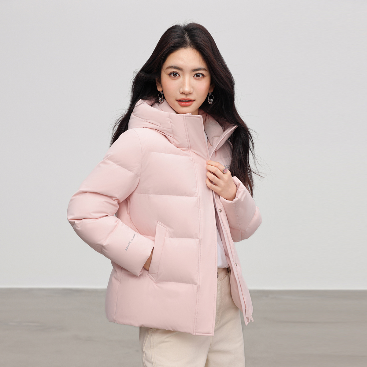 【雪舞系列】雪中飞25冬新款女士短款保暖连帽羽绒服美拉德面包服