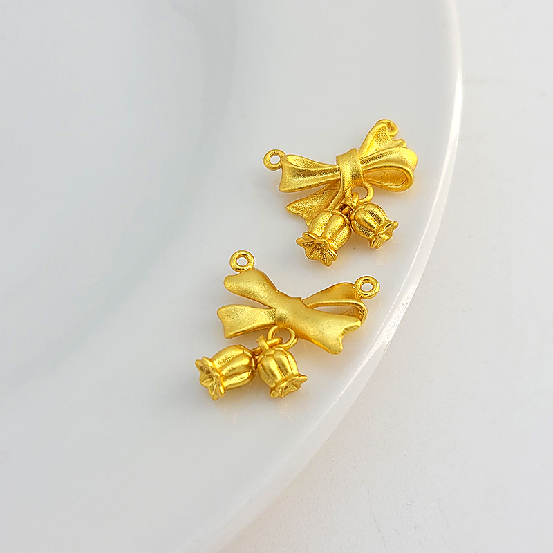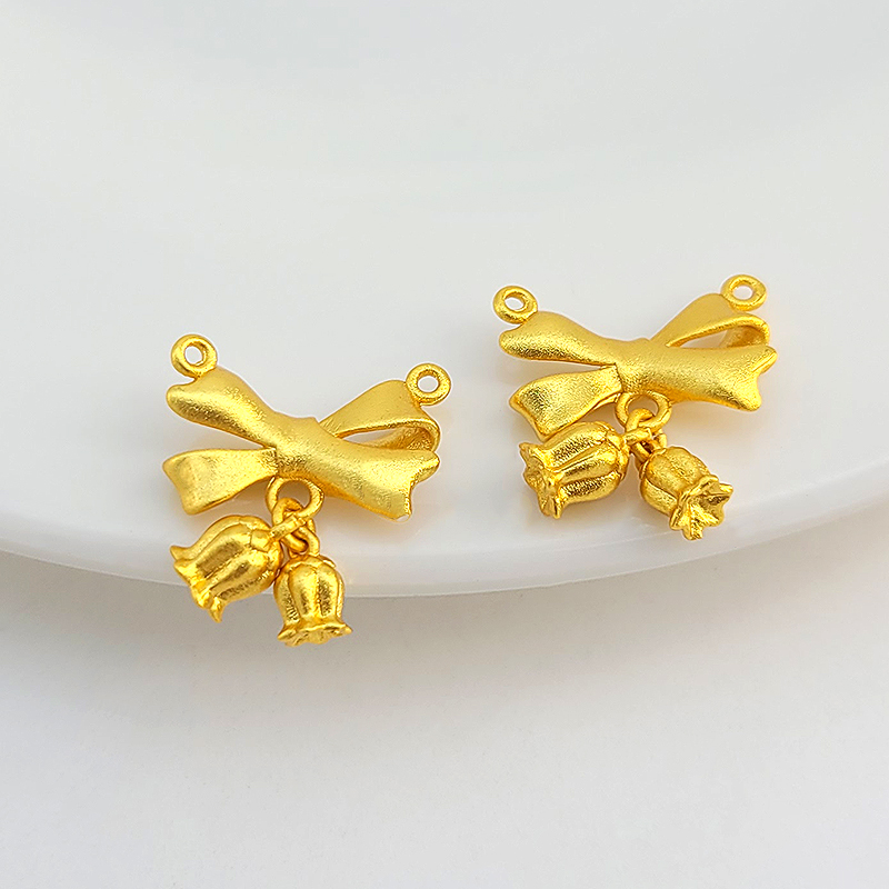 24K铜包古法沙金在逃公主蝴蝶结双吊毛衣链吊坠diy串项链吊饰配件