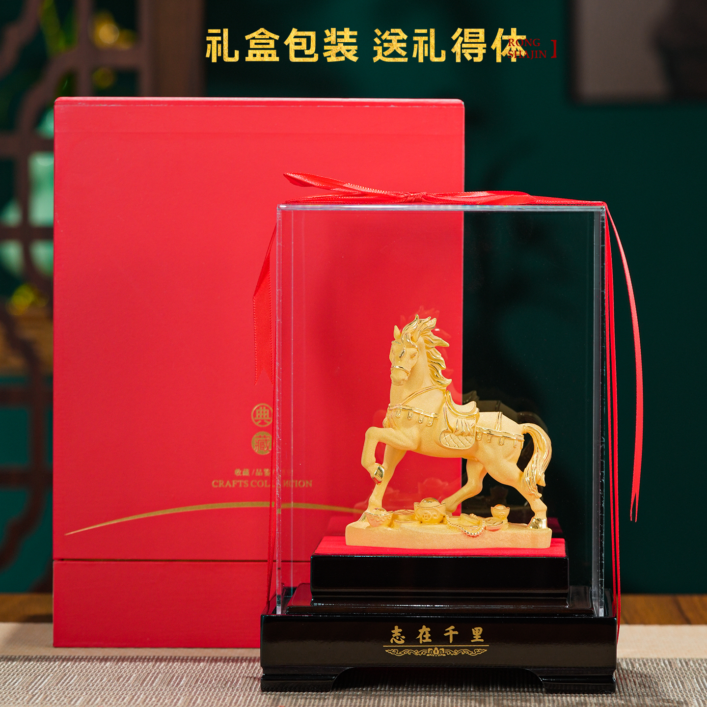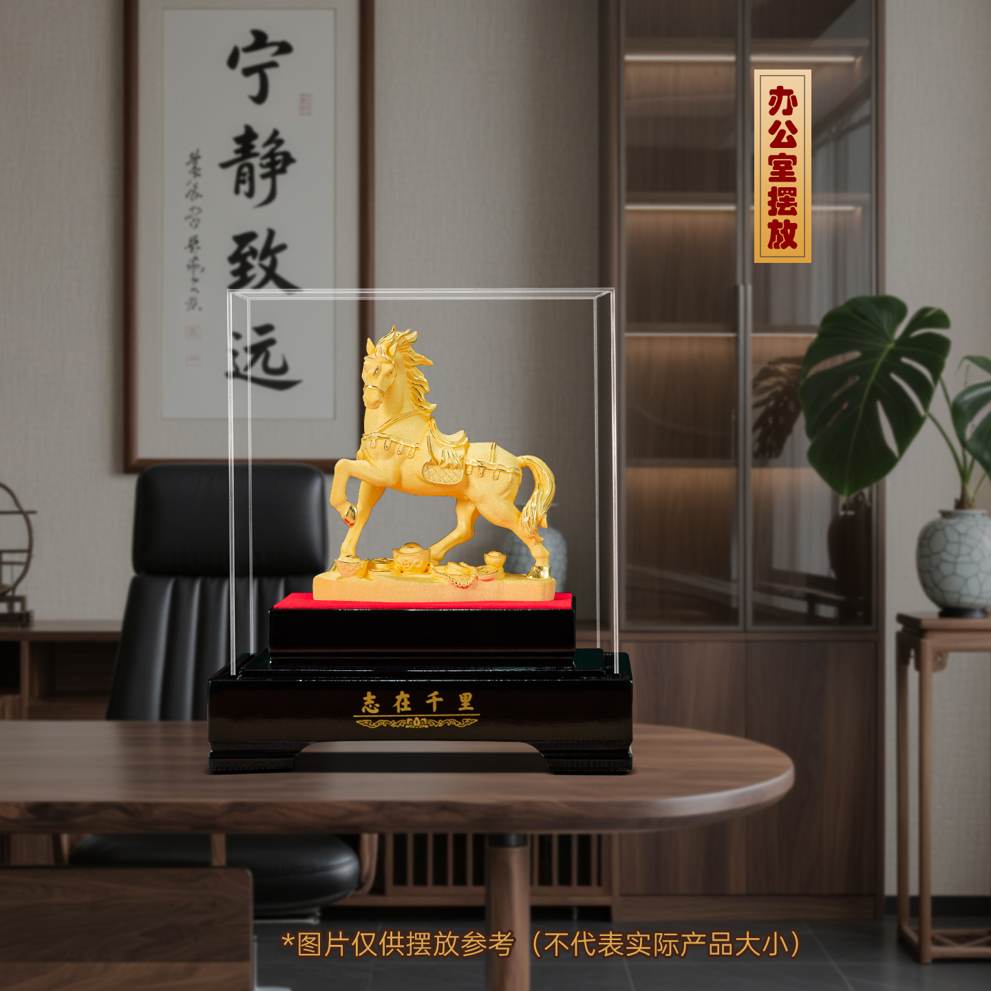 志在千里绒沙金马摆件招财客厅酒柜生肖马办公室桌面装饰开业礼物
