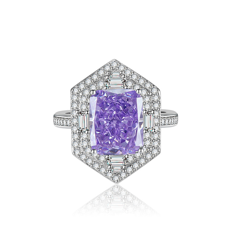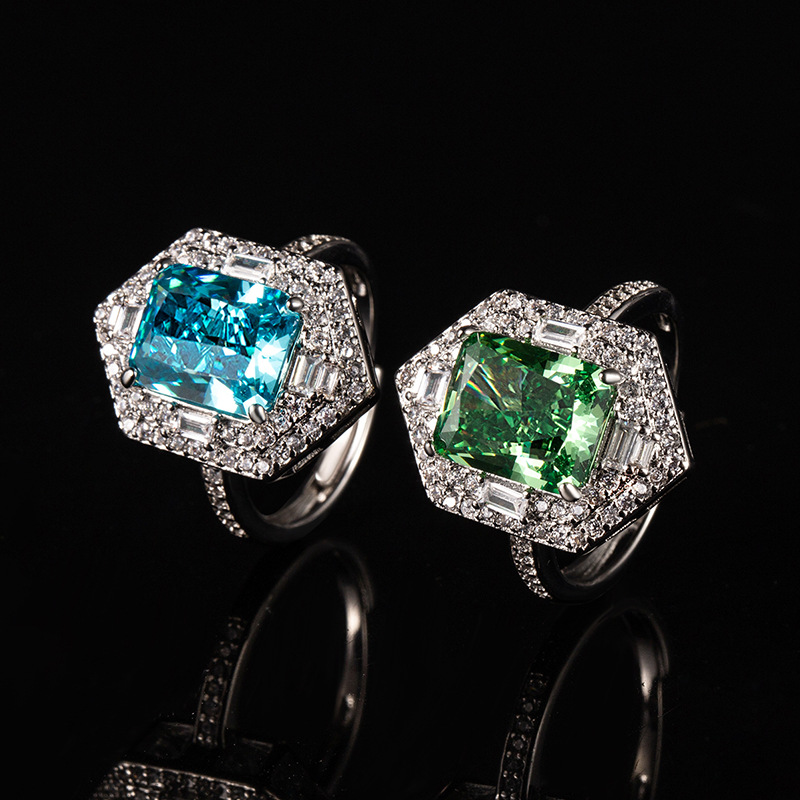 高端设计高碳钻冰花切彩色锆石戒指时尚长方红色豪镶指环