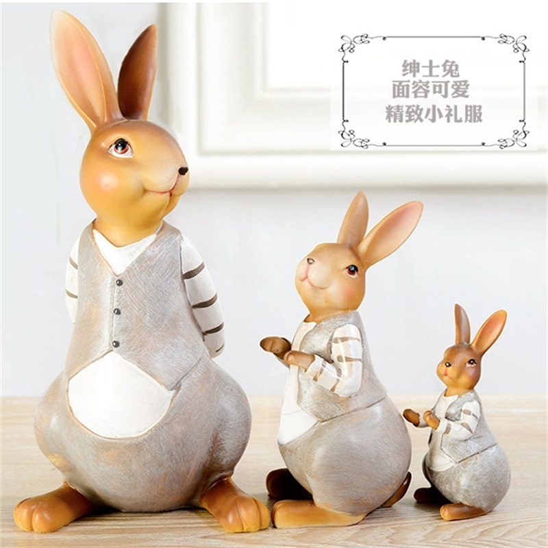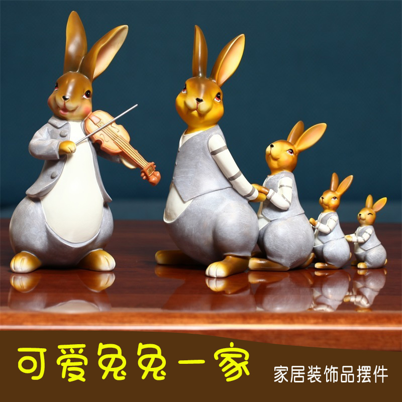 可爱兔子树脂摆件一家三口四口之家客厅装饰品搬家礼物彼得兔摆台