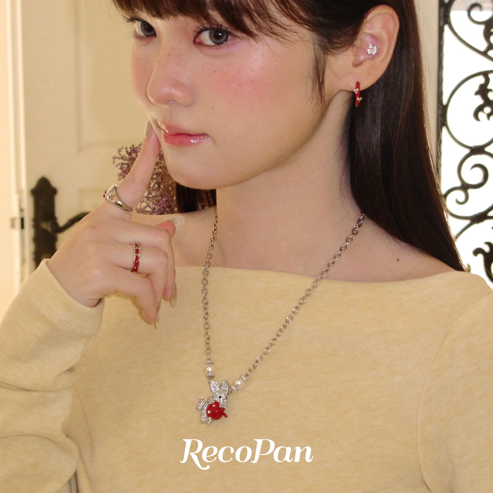 RecoPan圣诞夜的兔子/新品原创礼物设计感好运苹果满钻精致项链