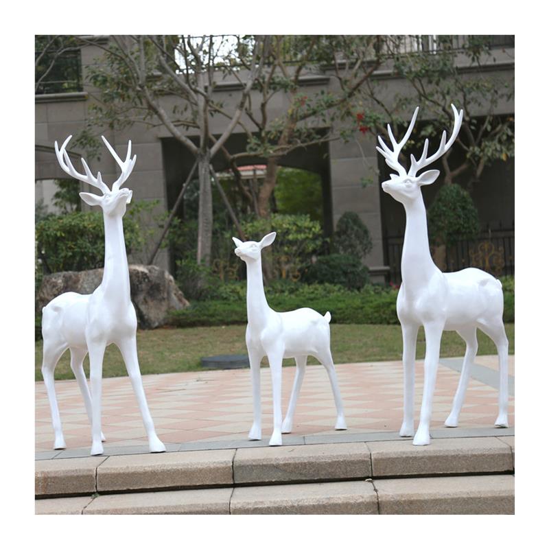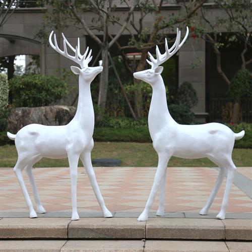 户外彷真玻璃纤维白鹿雕塑落地庭院园林景观商场婚礼装饰白色鹿摆