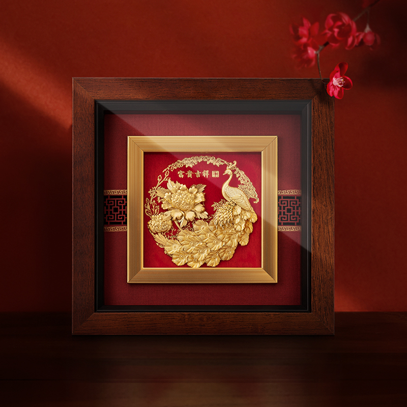 足金金箔富贵吉祥现代客厅桌面装饰画送朋友新婚结婚创意礼物