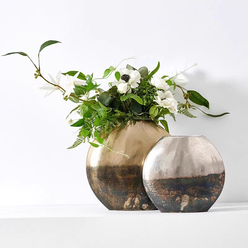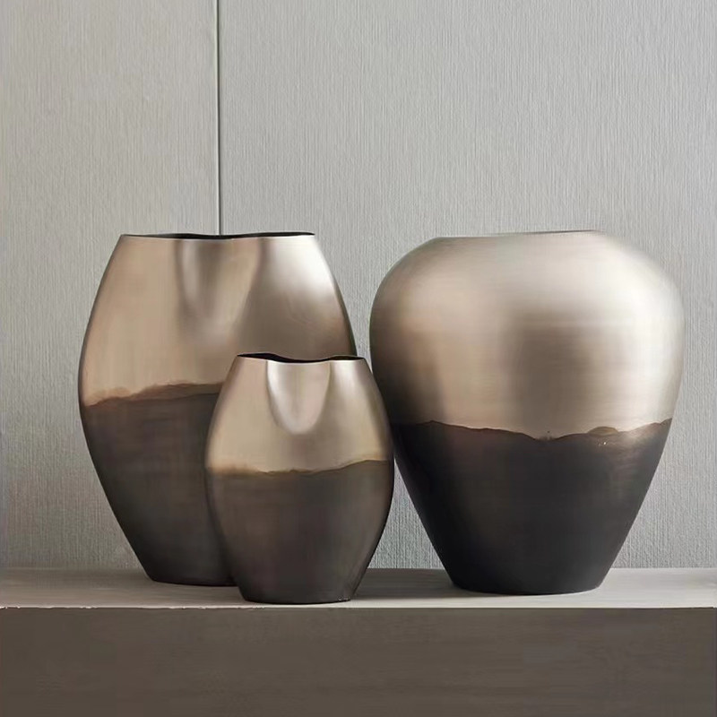 进口铝制新中式复古禅意古铜色渐变金属花器样板间酒店花瓶装饰品