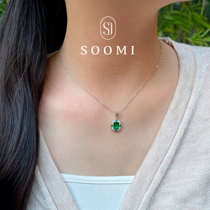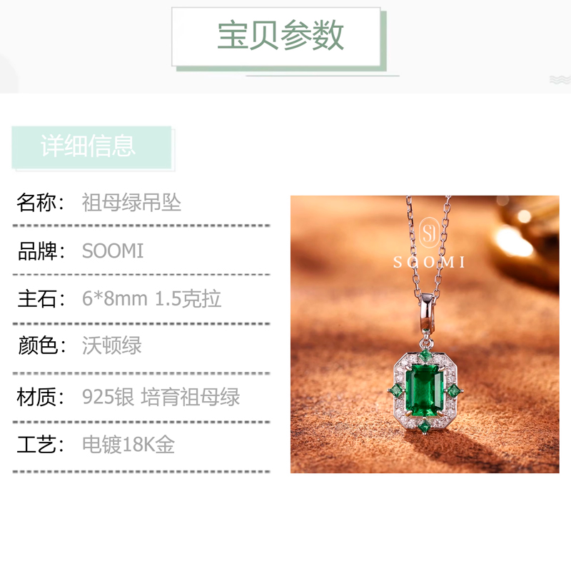 【扬帆起航】925银沃顿色培育祖母绿宝石项链高级感万能扣吊坠女
