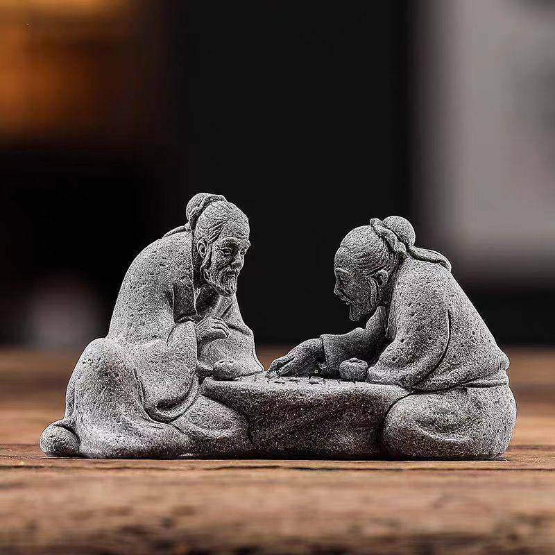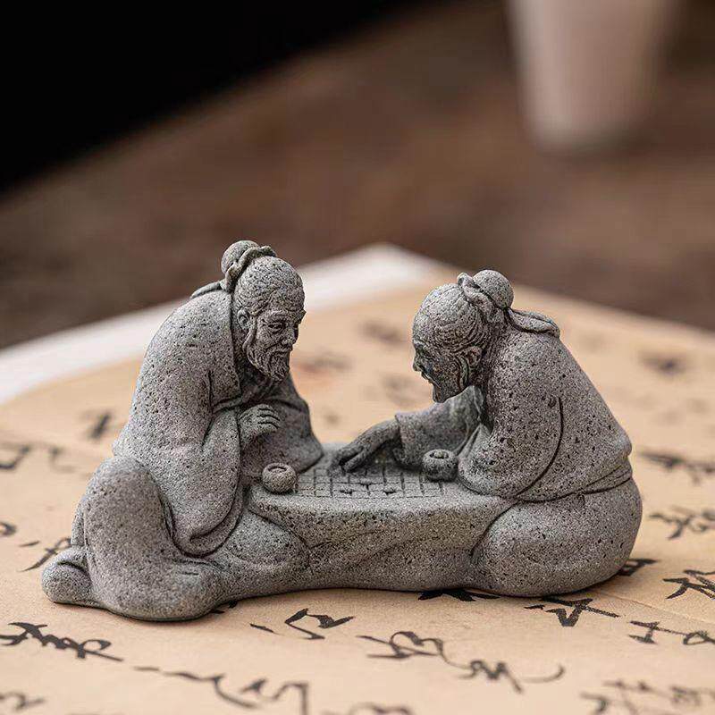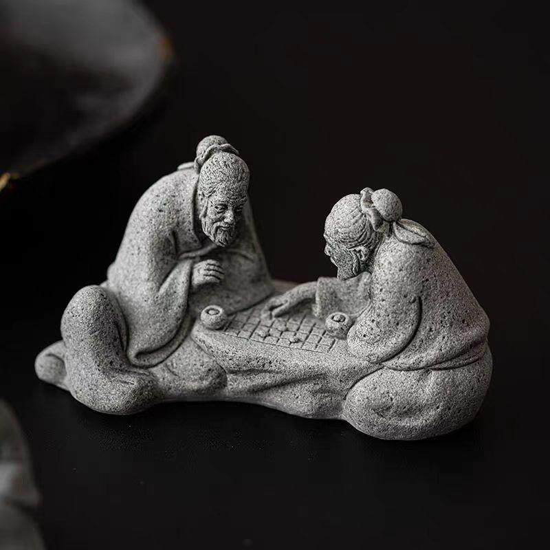老者对弈老人下棋鱼缸造景园艺花卉假山盆景摆件复古桌面创意装饰