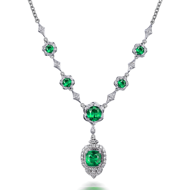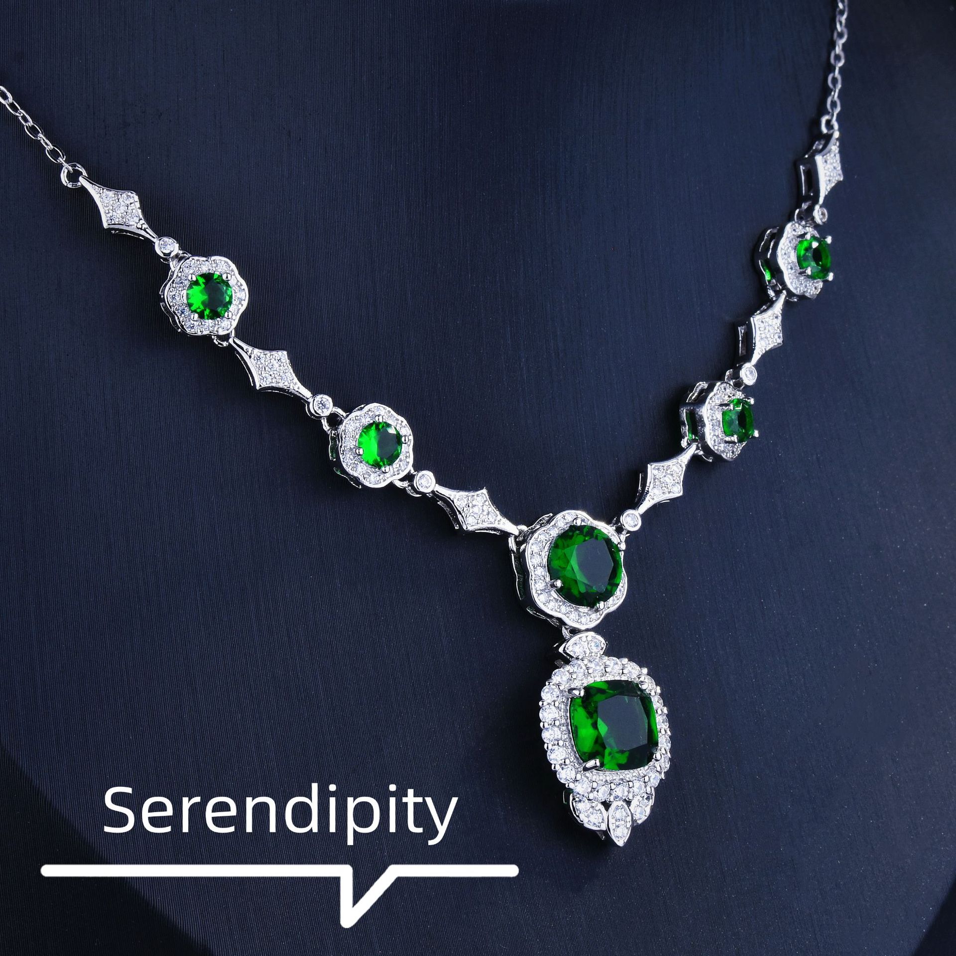 POLYSUTT重工设计仿天然祖母绿项链女高定绿色宝石晚装链吊坠套链