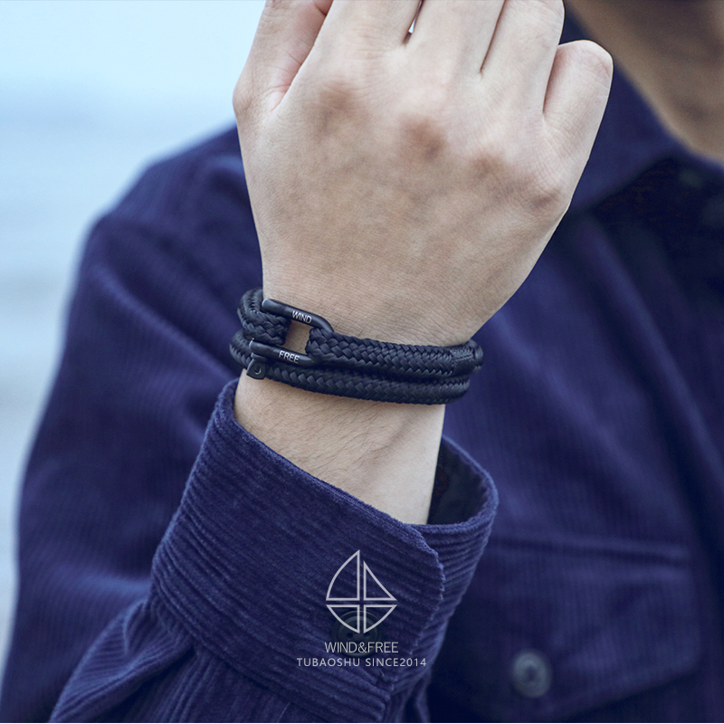 双圈编织船绳手链男女机长手绳刻字定制手镯编绳手环刻字情侣礼物