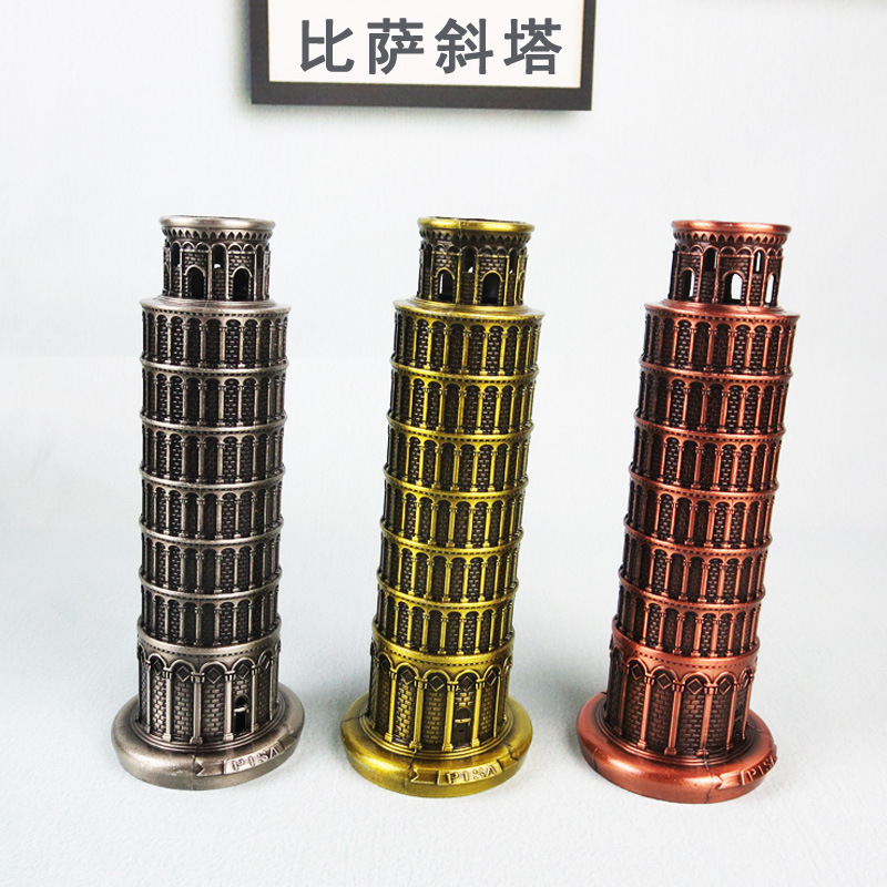 视频背景装饰艺术礼品摆件比例金属模型比萨斜塔欧式复古旅游景区