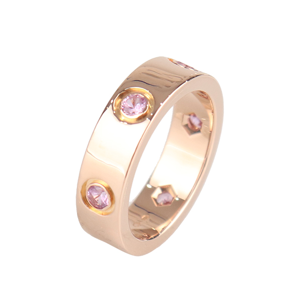 中古95「新」Cartier(卡地亚)LOVE粉色蓝宝石750玫瑰金52号戒指