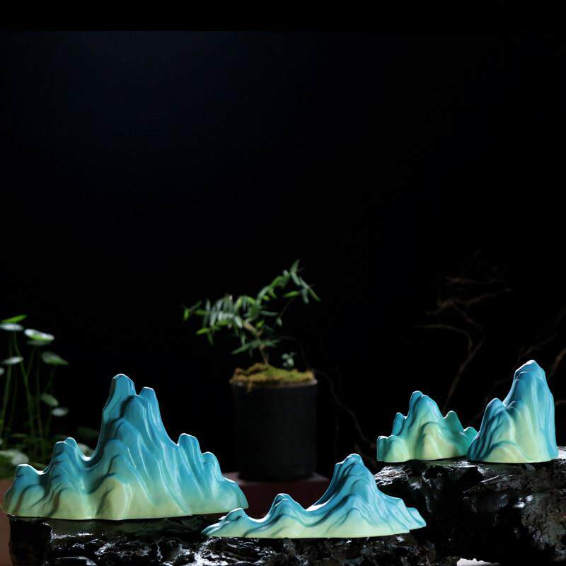 陶瓷千里江山绿色假山家居水景摆件鱼缸造景禅宗新中国风茶几室装