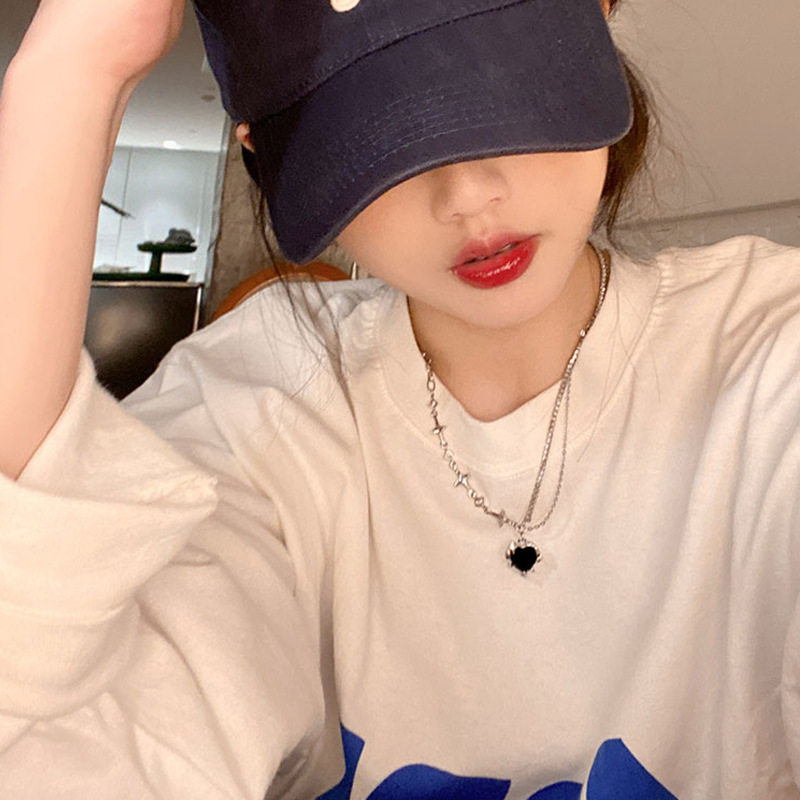 甜酷爱心双层钛钢项链女轻奢小众毛衣卫衣链设计感锁骨链吊坠