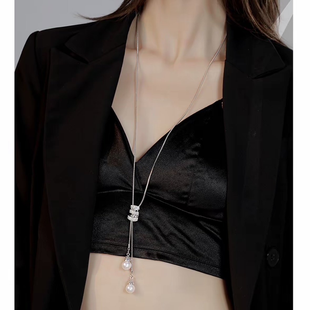 高级感仿珍珠长款毛衣链2025新款潮轻奢气质时尚小众项链衣服配饰