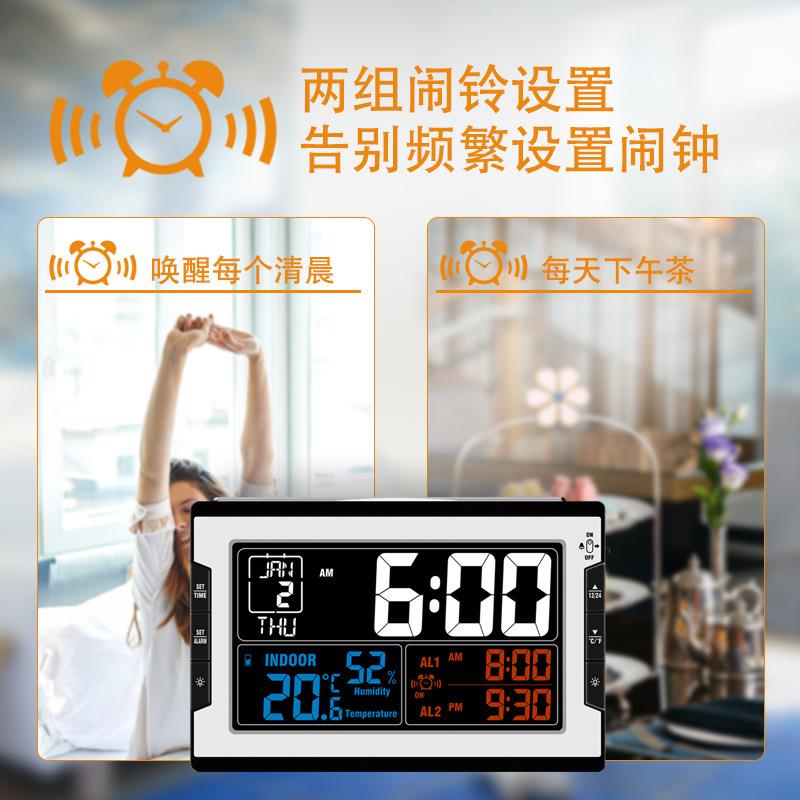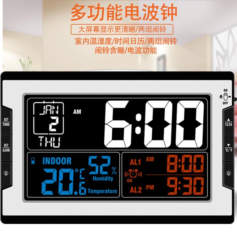 创意彩屏多功能电波闹钟室内温度湿度双闹铃贪睡万年历数字电子钟