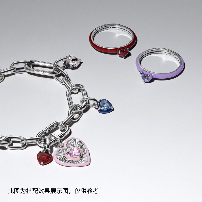 Pandora潘多拉紫色心形戒指7色可选经典爱心对戒可叠戴简约