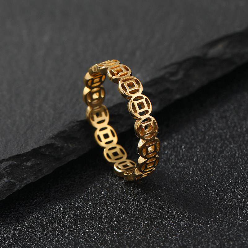 氧擎严选铜钱戒指香港正品纯沙金钱多多指环素圈女男士金色情侣戒