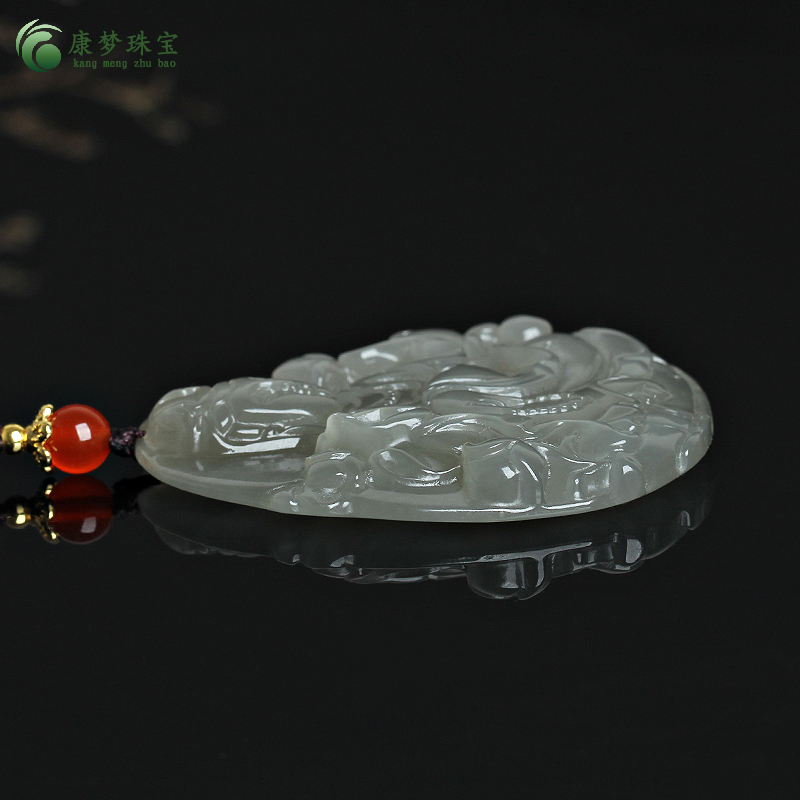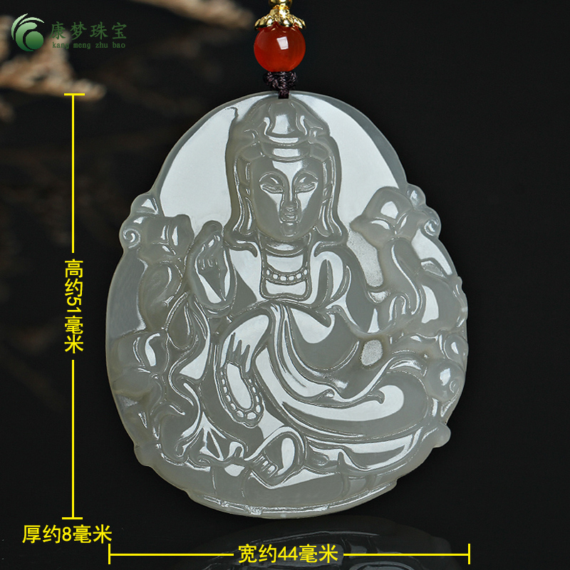 和田玉观音吊坠烟紫色莲花观音菩萨挂件男款玉石饰品玉佩项坠玉器