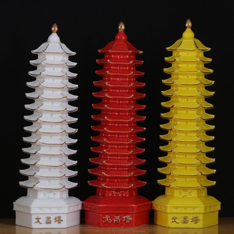 文昌塔摆件陶瓷七层九层十三层黄色白绿色黑色书房办公室书桌客厅