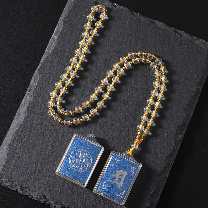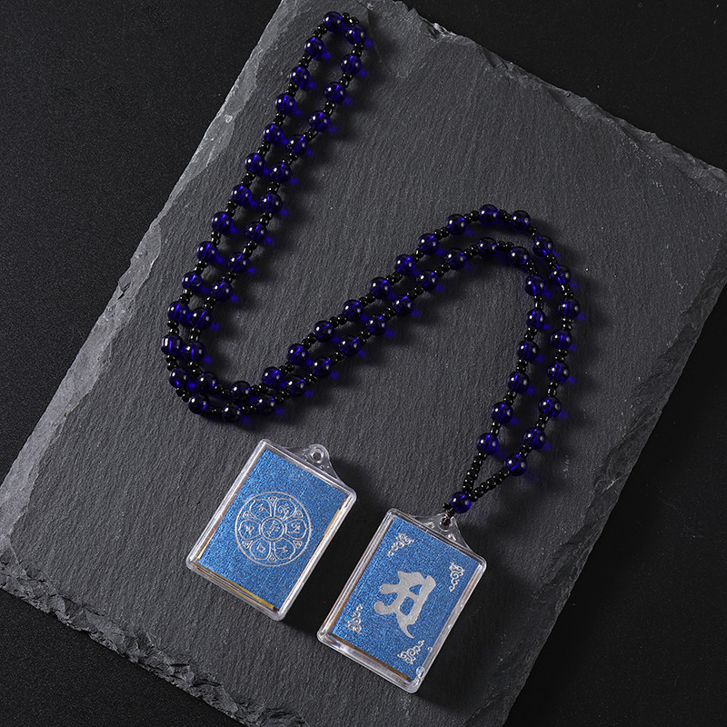 蓝色六字真言吊坠挂件方形楞严咒项链旅游区寺庙结缘男女配饰饰品