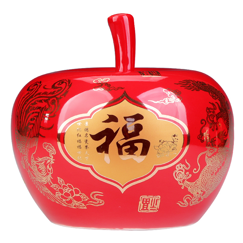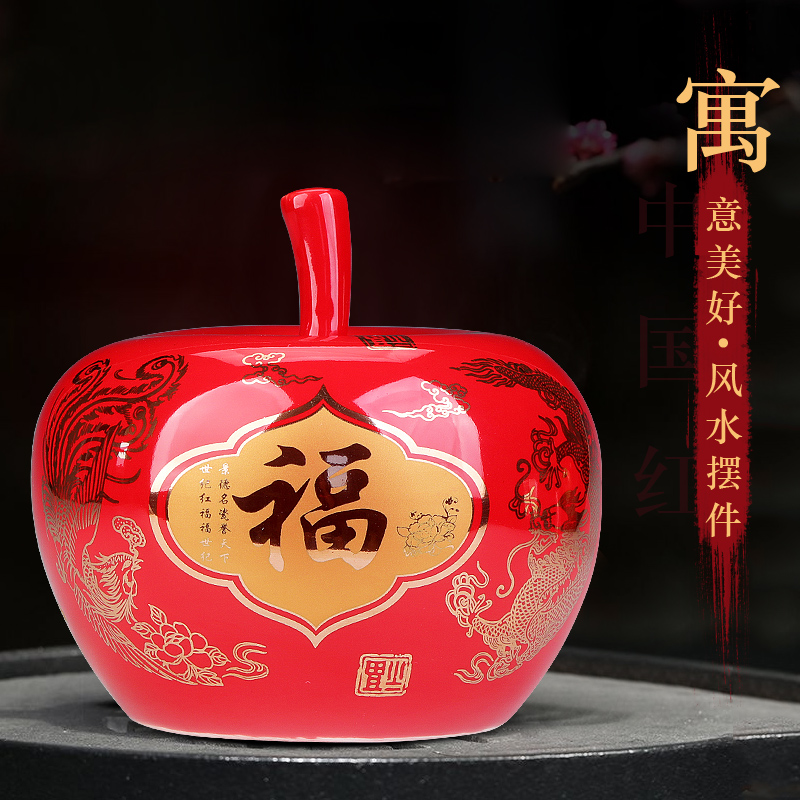 景德镇陶瓷中国红小摆件结婚红苹果玄关摆设新中式装饰客厅工艺品