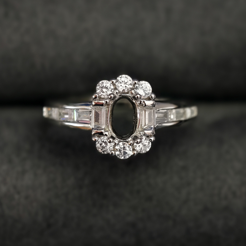 【镶口:4X6mm】小巧精致纯银未镶嵌S925银镀18K白金女款活圈设计