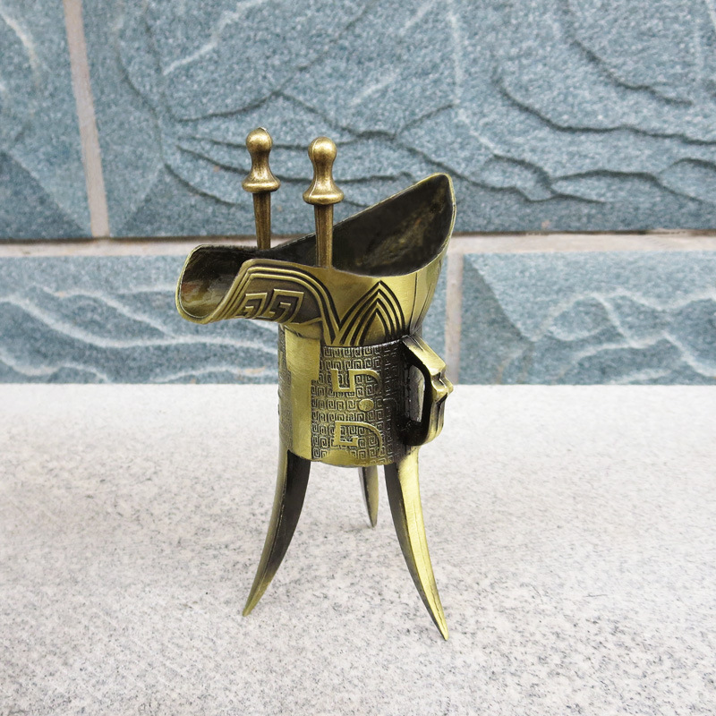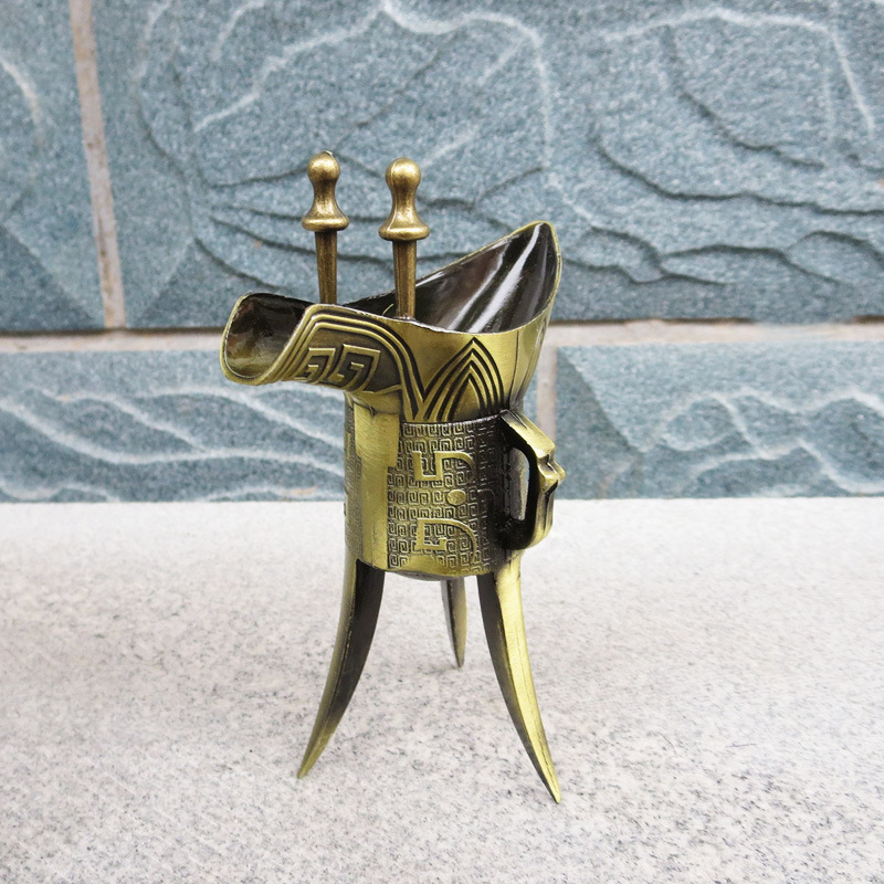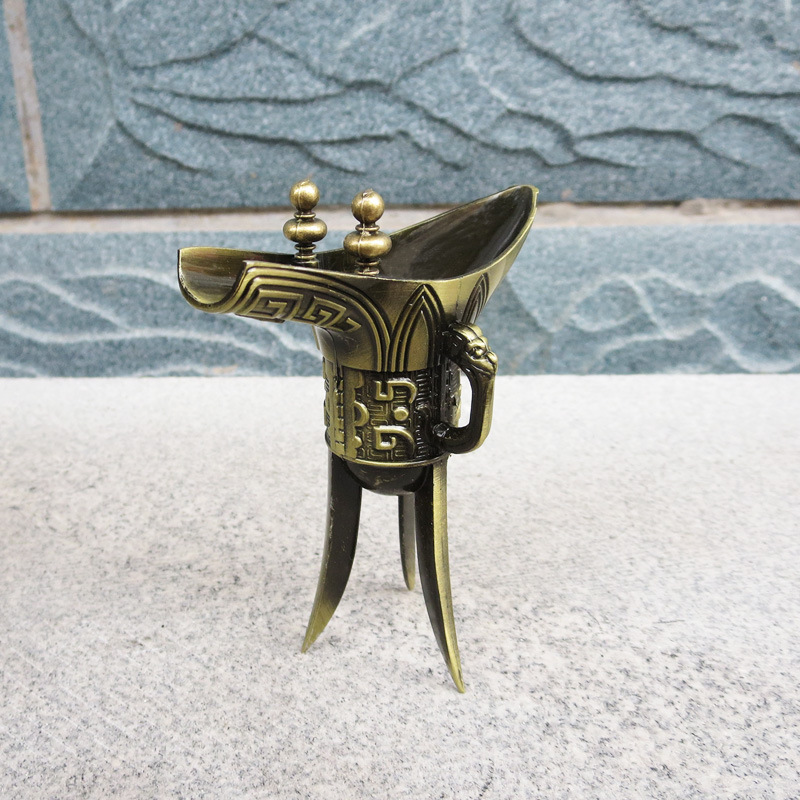 视频背景家装饰艺术品礼摆件复古比例金属模型爵杯浮雕酒青三脚杯
