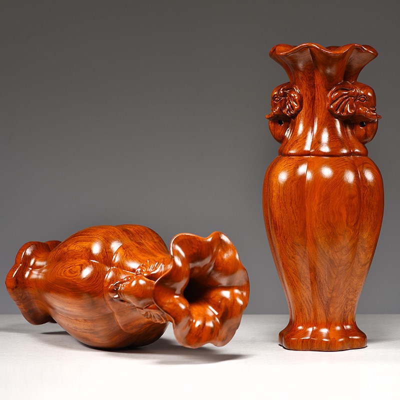 花梨实木花瓶摆件实木质太平有象花瓶插花家居客厅装饰摆设送礼品
