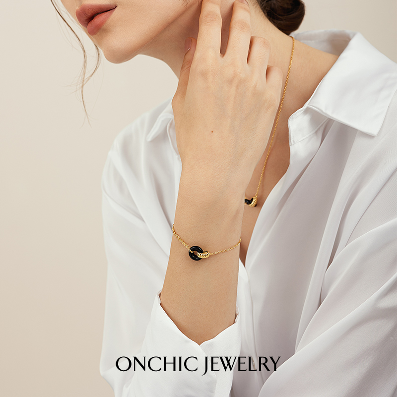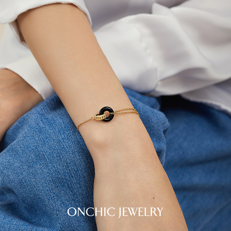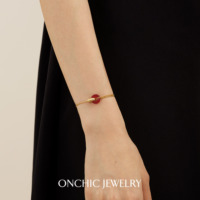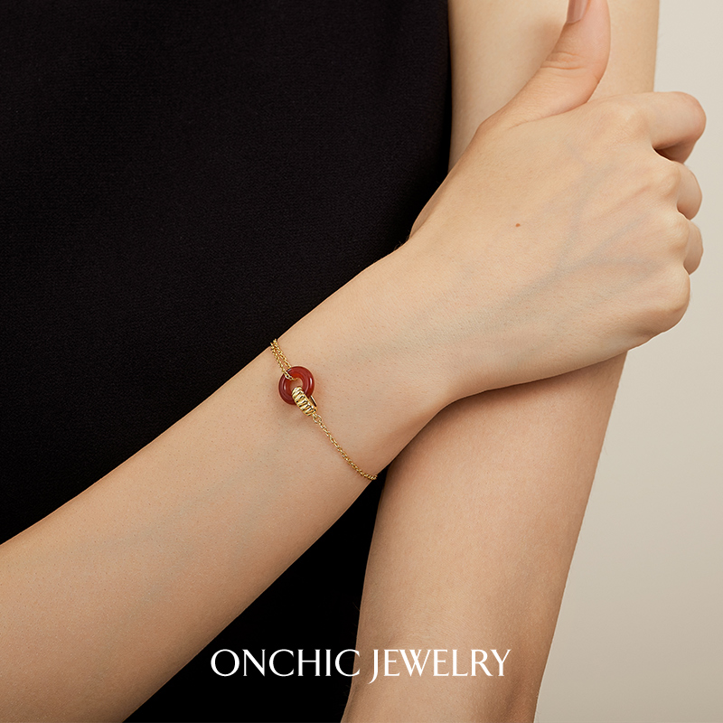 onchic小心诗黑玛瑙平安扣手链女手串红玉髓轻奢小众精致送礼物