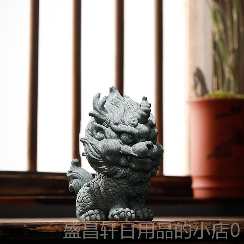 高档国风青砂石瑞摆兽麒麟动意物创件客厅办公室桌面鱼缸景观装饰