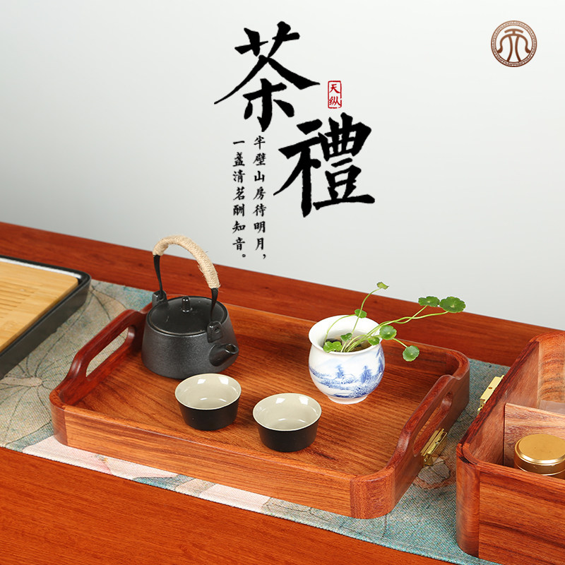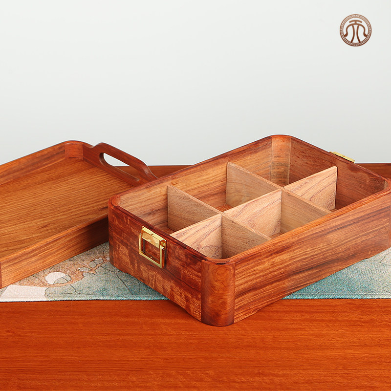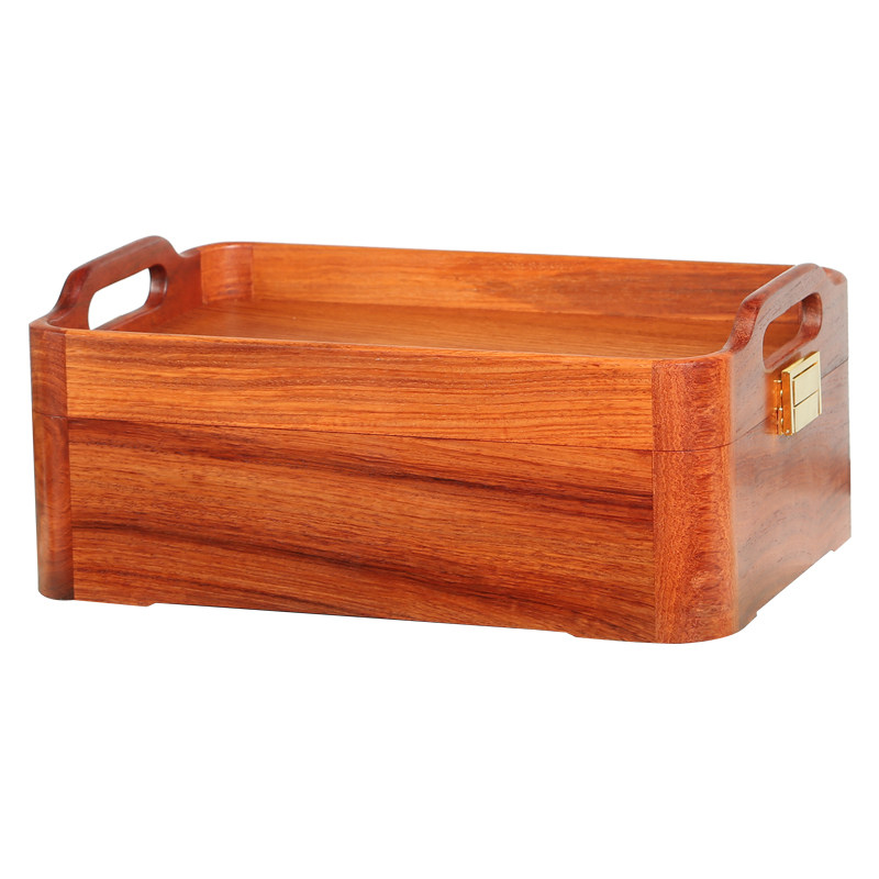 缅甸花梨全独多功能双层托盘红木中式便携功夫茶具实木收纳储物盒