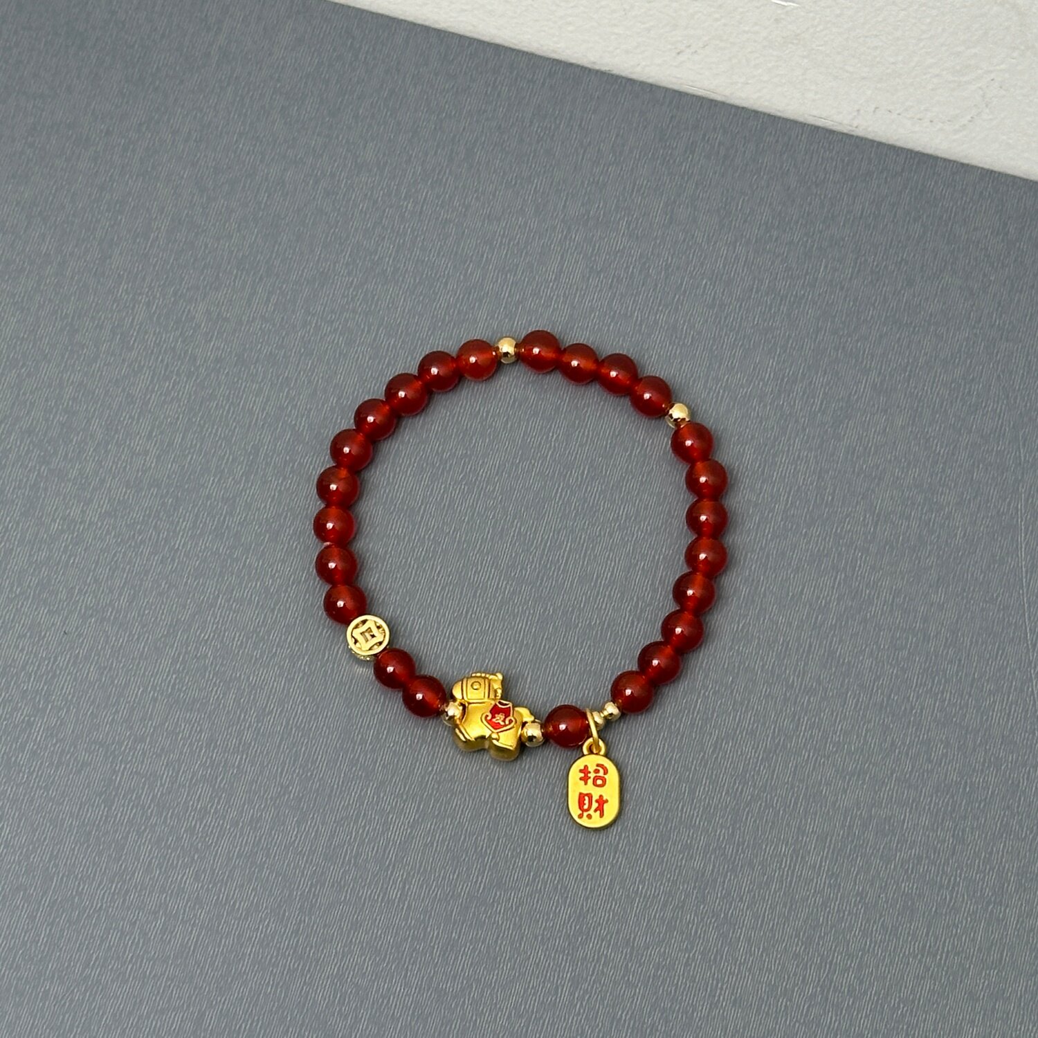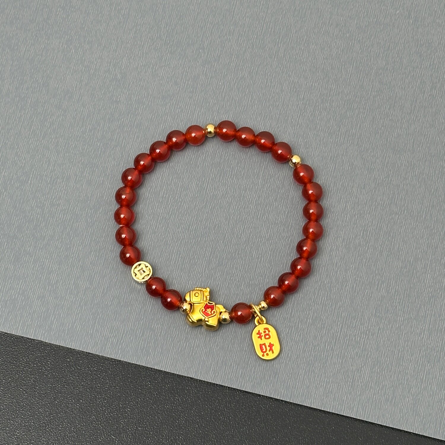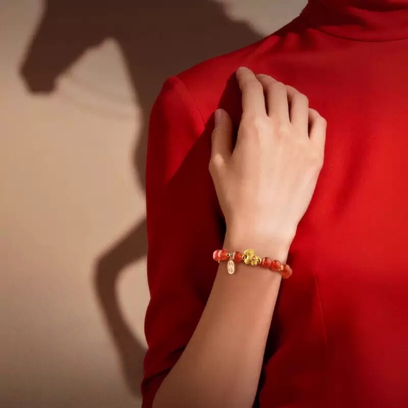 天然红玛瑙手串女款2026马年本命年手链生肖马红色转运珠女生礼物