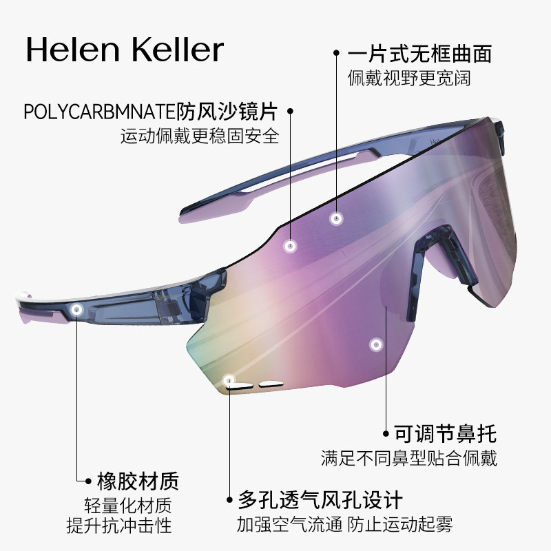海伦凯勒2025年爆款护目镜墨镜女骑行防风沙眼镜运动防晒太阳镜男