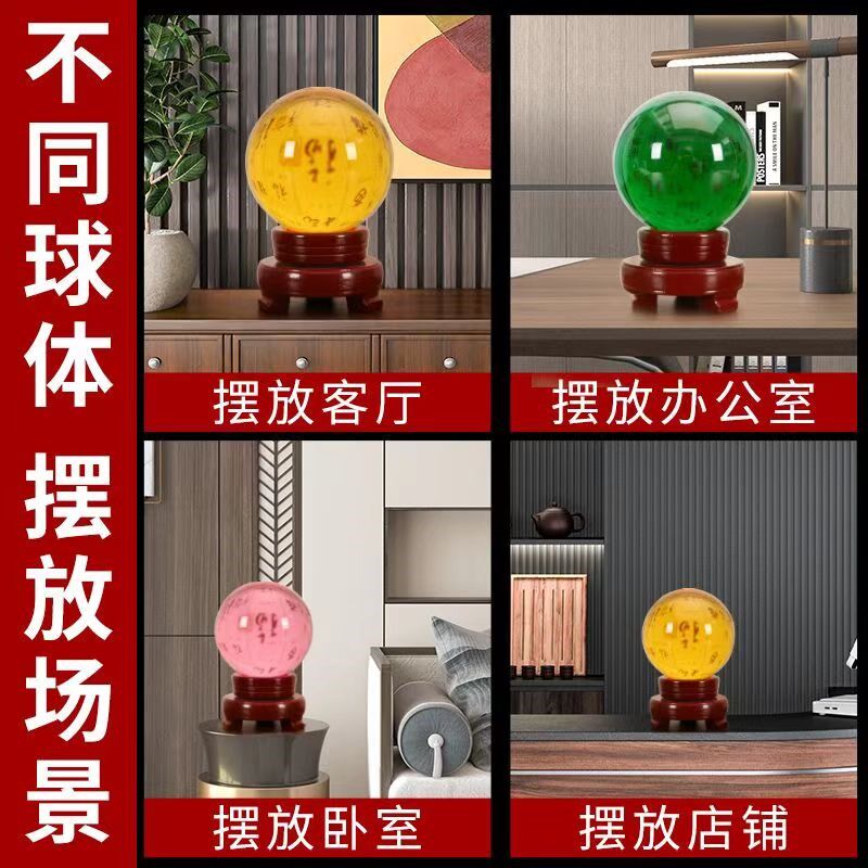 水晶球摆件招财黄色白色紫色红色粉色H绿色蓝色透明水晶球安宅好