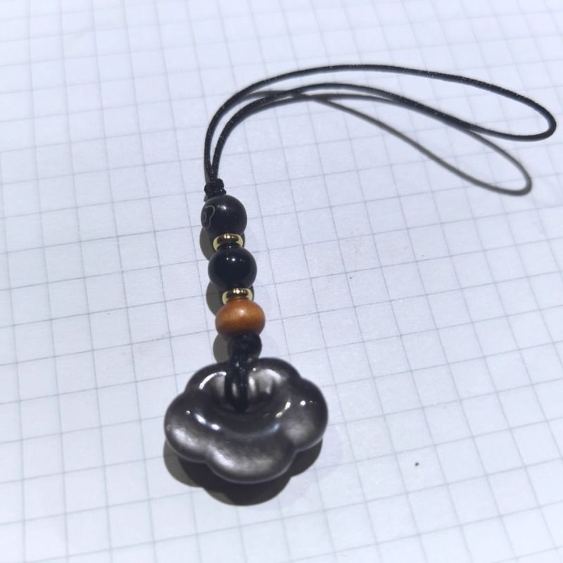 VZZS祥云黑曜石银曜石小祥云吊坠diy天然配件情侣锁骨链钥匙扣