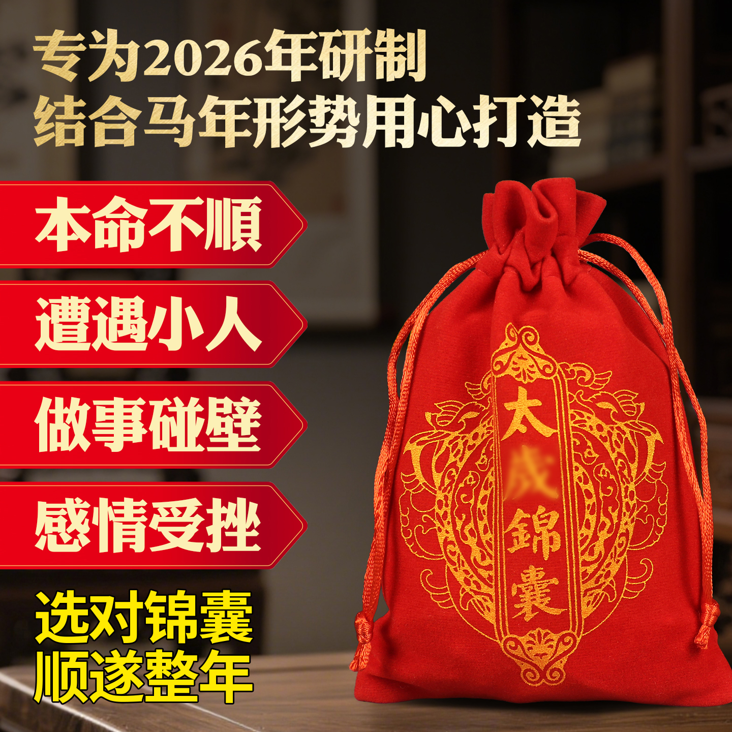 2026新款锦囊马年本命年挂件鼠牛兔十二生肖福袋文哲大将军护身
