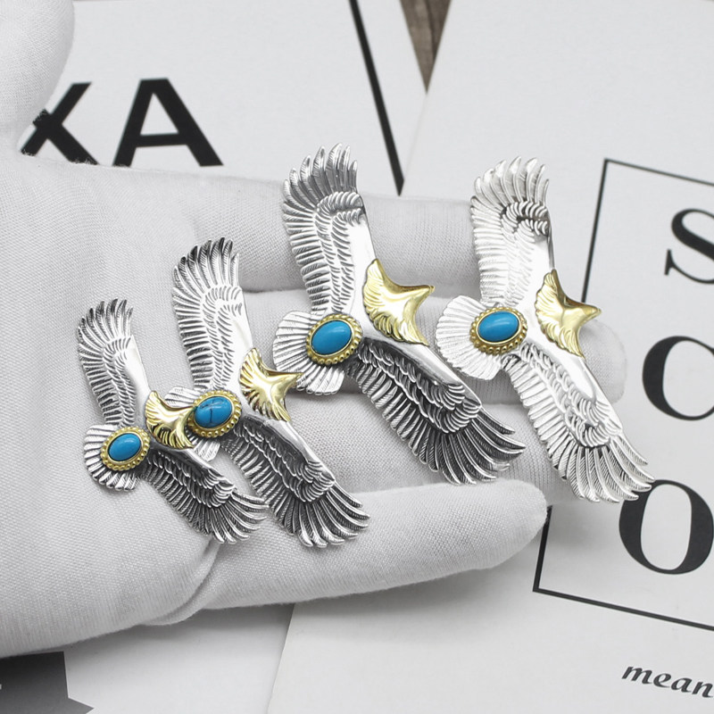 925纯银镶嵌松石点金高桥老鹰吊坠日韩复古潮流百搭ins风男女项坠
