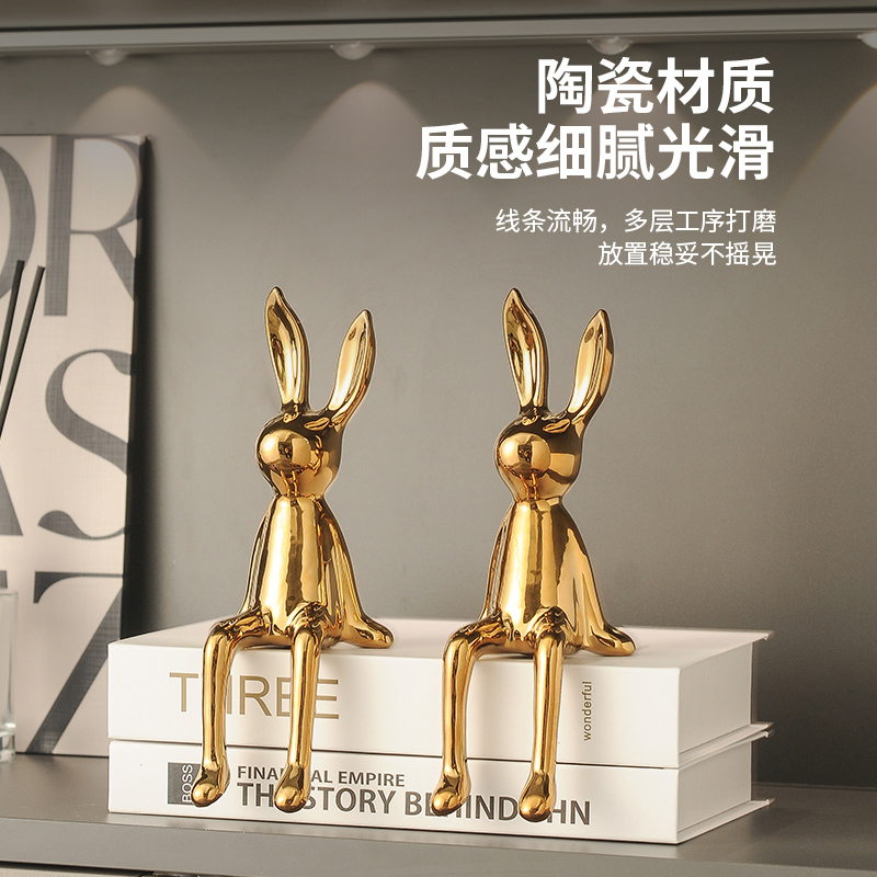 兔子治愈情绪小坐姿摆件软装高级感客厅电L视柜酒柜办公桌面装饰