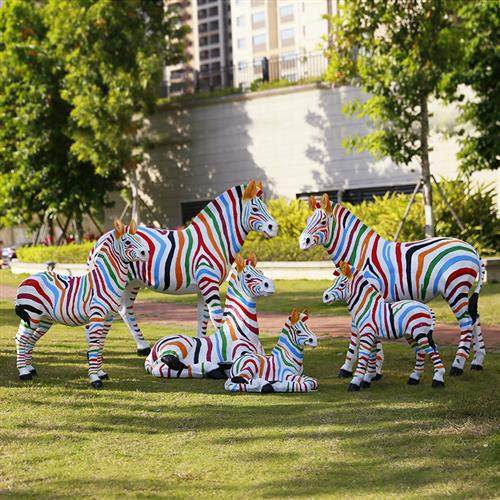 户外仿真斑马雕塑玻璃钢花园庭院园林小品景观装饰动物模型马摆件