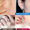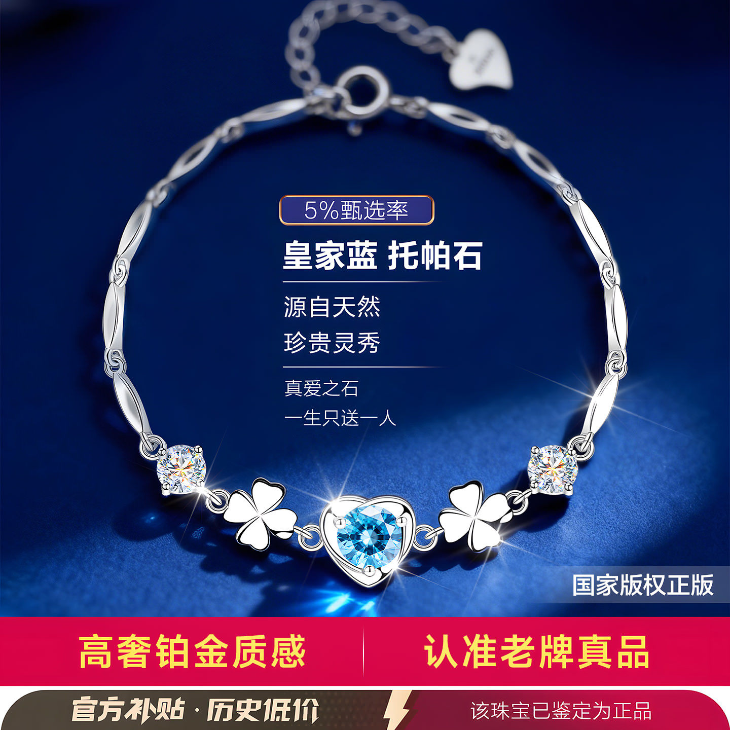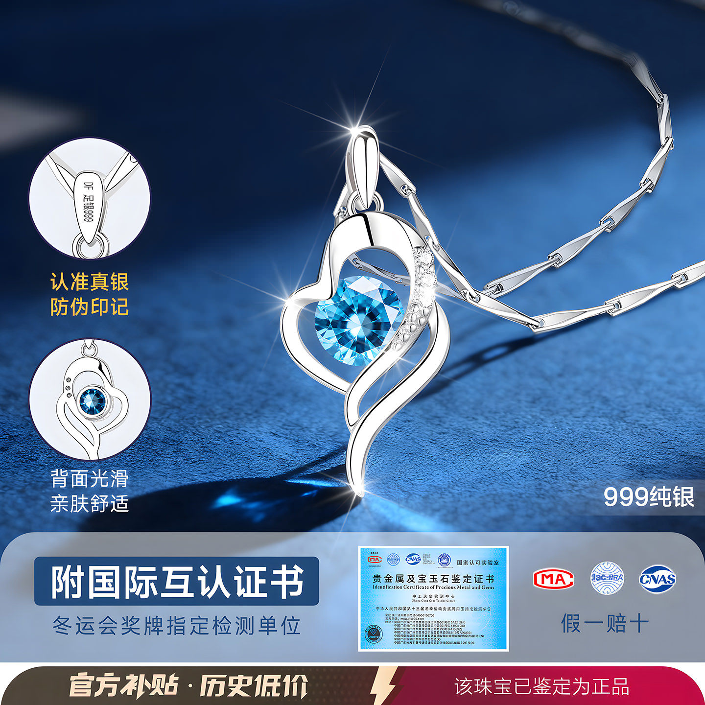 999纯银天然蓝色宝石托帕石银项链女首饰套装四件套生日礼物老婆