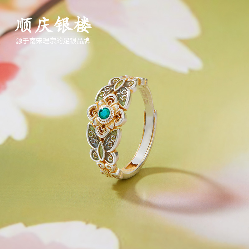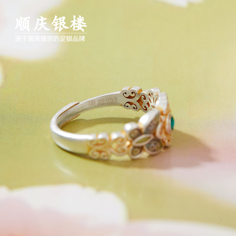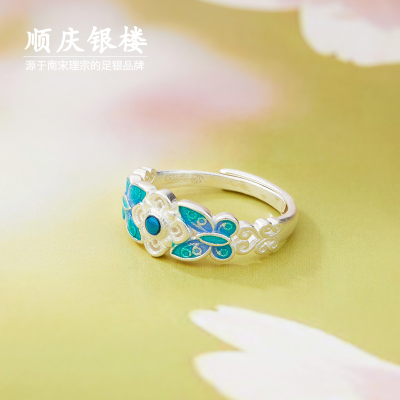 顺庆银楼S9999纯银缠枝冰心戒指足银指环新中式国潮民族风送女友